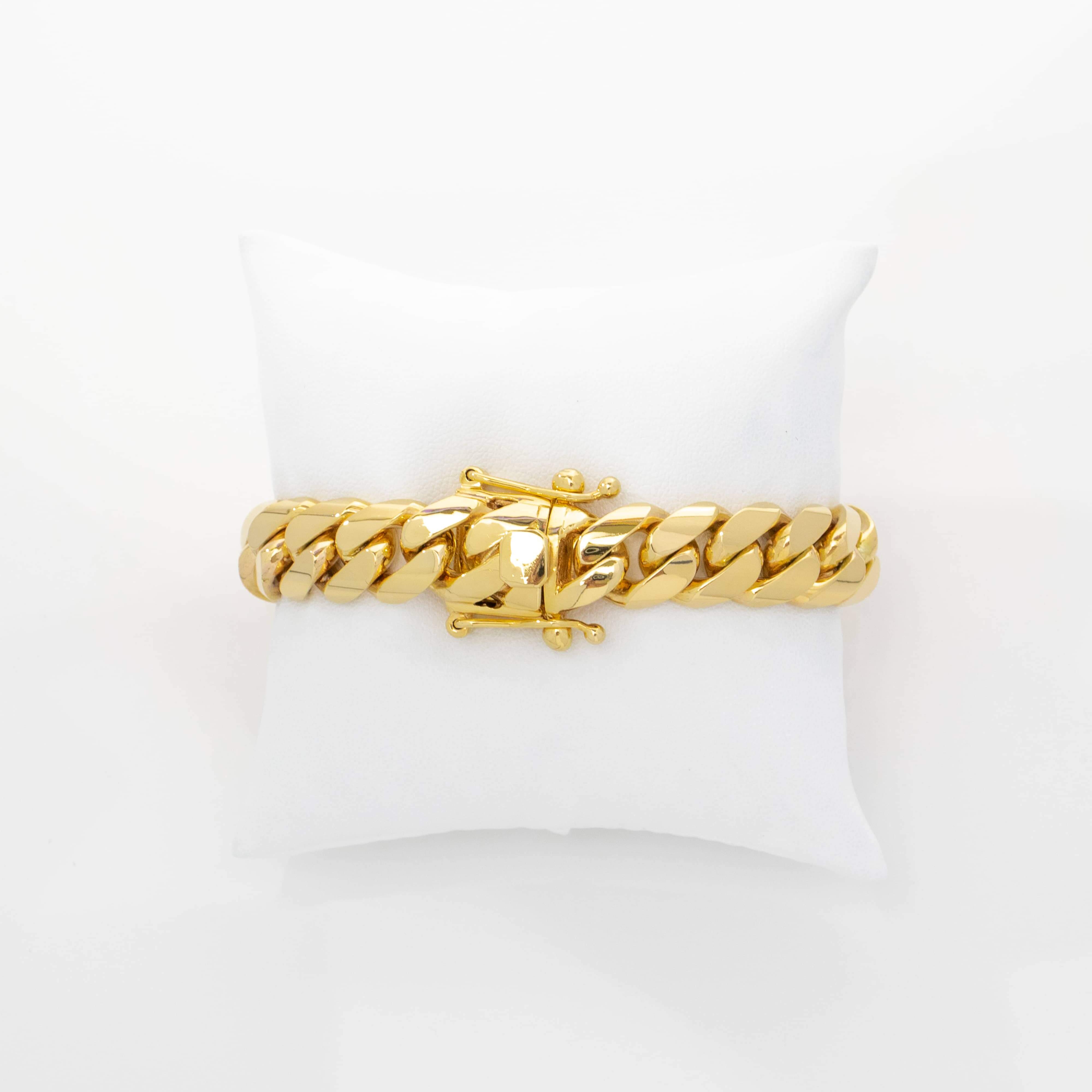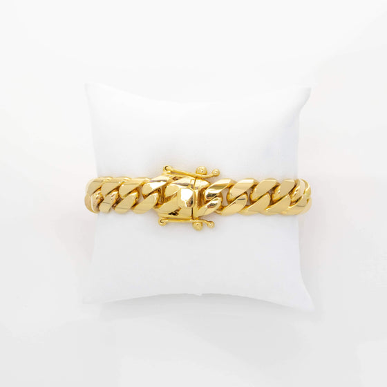 alt=" Discover the 13mm Solid Gold Cuban Link Bracelet. Bold Cuban links in 10k, 14k, or 18k gold with custom lock options for a timeless, luxurious look. "