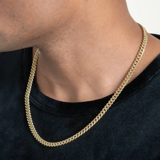 alt=" Shop hollow gold Cuban link chains (3mm-7mm) made with fine Italian gold. Lightweight, affordable, & stylish. 10k & 14k gold options. Buy now! "