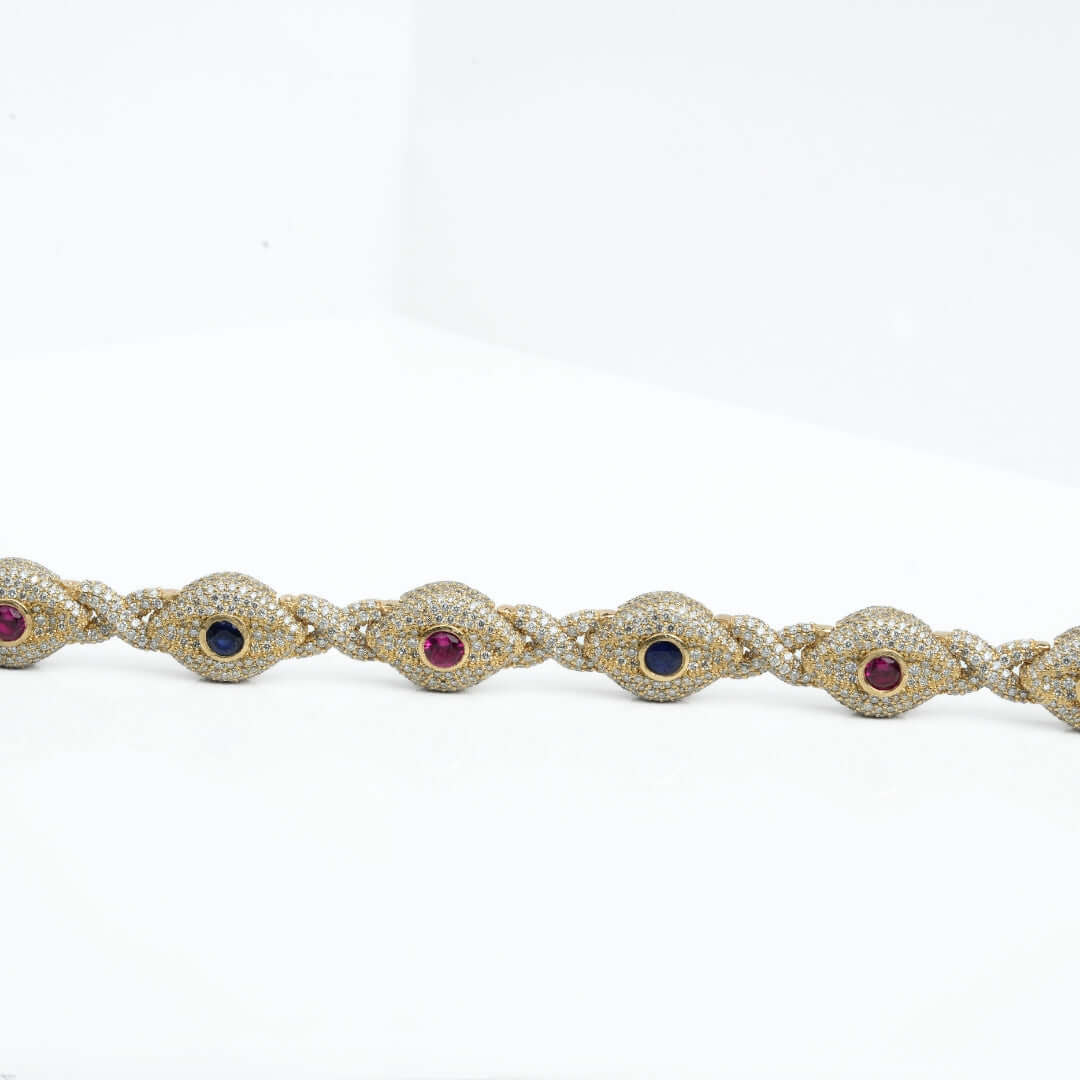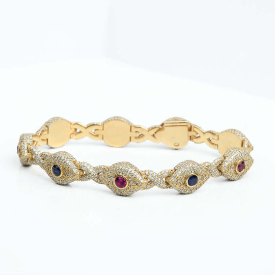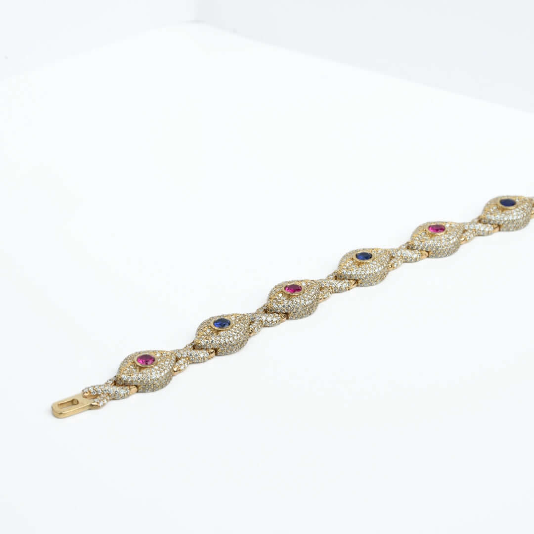 Beyond its stunning aesthetic, the evil eye symbol is believed to offer protection and ward off negative energy, making this bracelet not only a beautiful accessory but also a meaningful talisman. This Diamond Evil Eye Gemstone Bracelet is perfect for those who appreciate bold style, luxurious materials, and meaningful symbolism. Make a statement of both fashion and protection with this exceptional piece.
