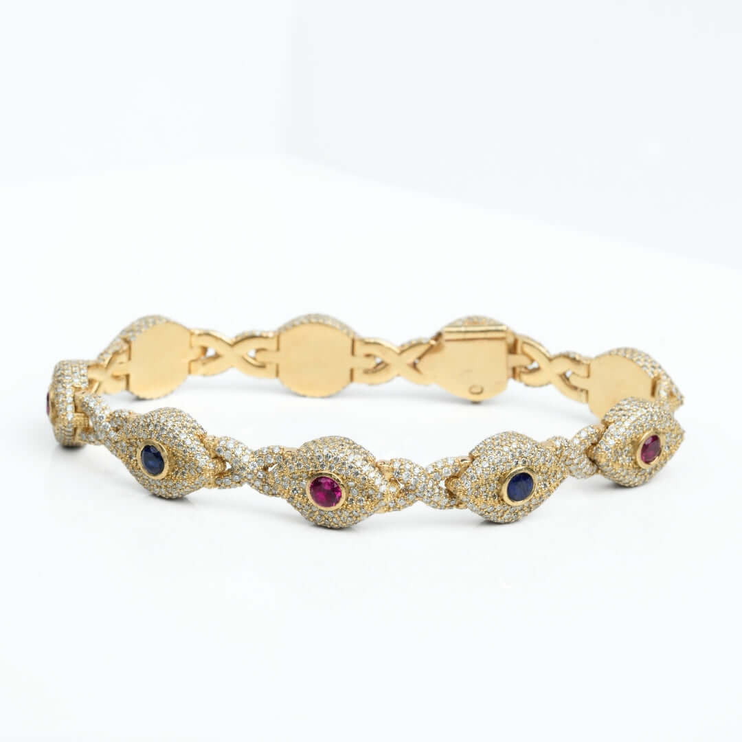 Ward Off Negativity with Dazzling Style: 13 Carat Diamond Evil Eye Gemstone Bracelet in 10k Yellow Gold