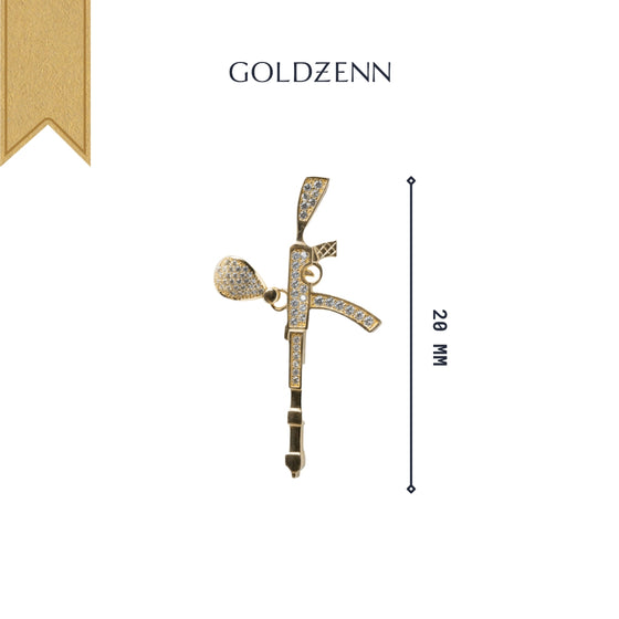 Alt="Make a bold statement with the AK-47 Firearm Pendant in 14K Yellow Gold, featuring CZ stones for extra shine. A powerful symbol crafted for those who stand out."