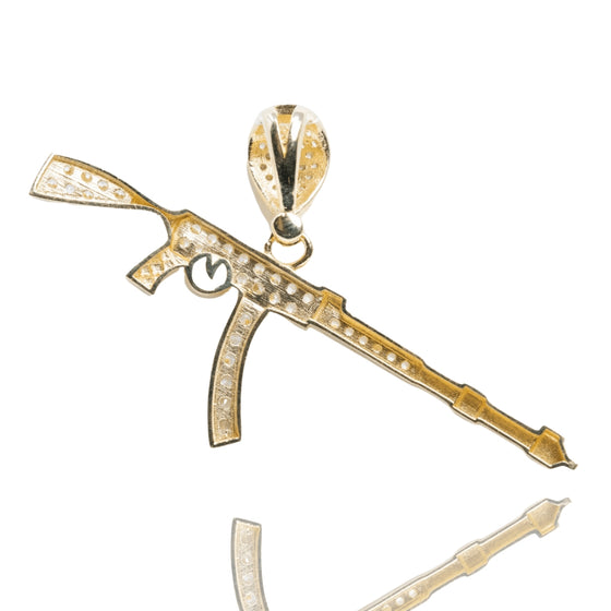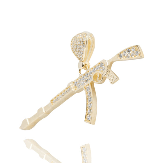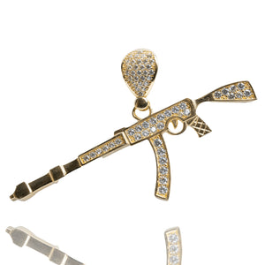 AK-47 Firearm Pendant with CZ Stones - 14k Yellow Gold