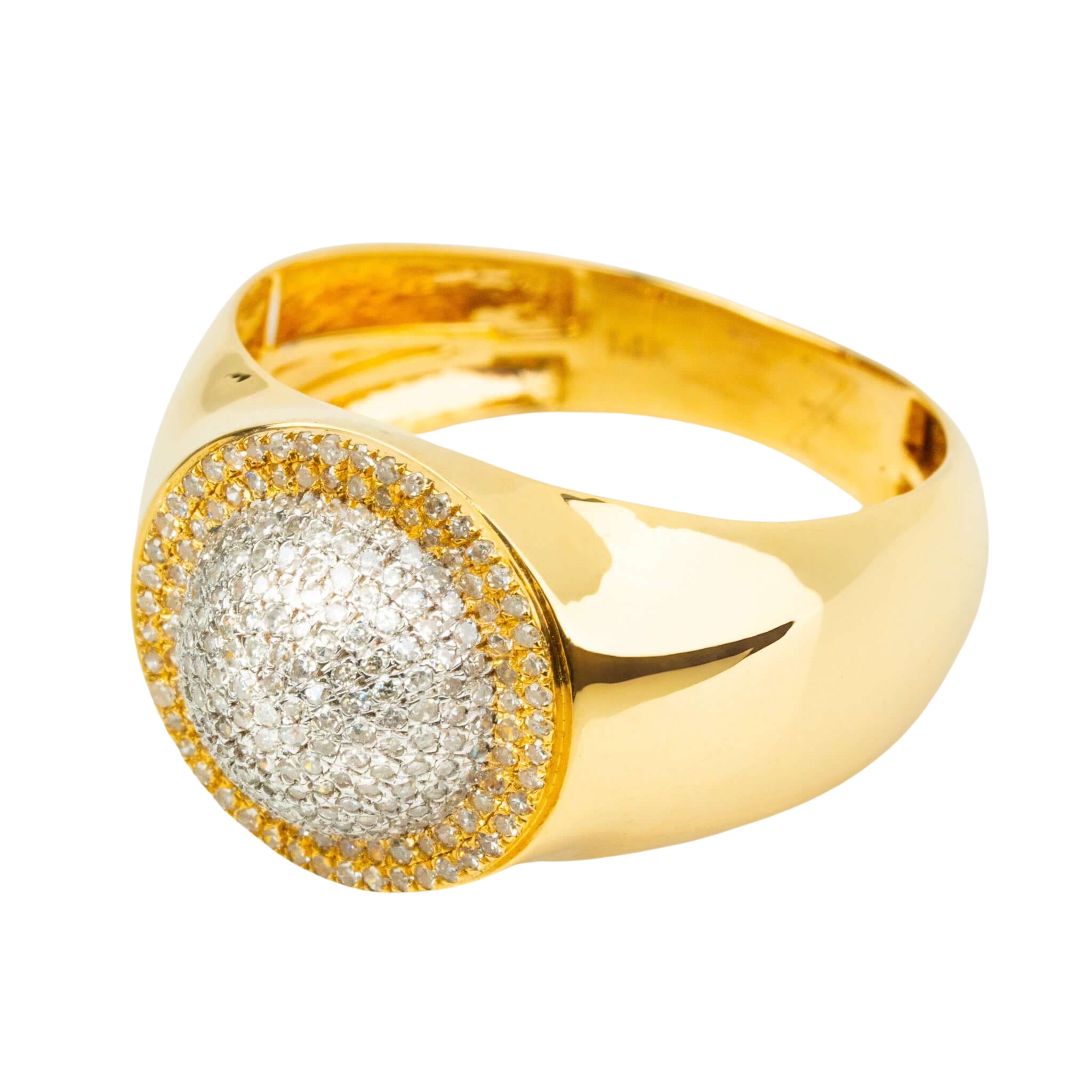 Elevate your style with our Men's Diamond Gold Ring, a masterpiece that exudes luxury and sophistication. Crafted from 14K yellow gold, this bold design features a gleaming top encrusted with 0.49 carat total weight (CTW) of round, natural diamonds. The meticulously placed diamonds create a striking display of brilliance, perfectly complemented by the rich, warm hue of the gold band. Ideal for any occasion, this timeless piece is the perfect symbol of achievement and class. Whether you're dressing for success or marking a milestone, this ring ensures you stand out with confidence.