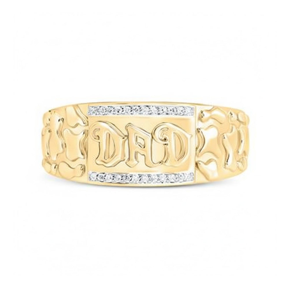 Honor timeless strength and love with this 1/12CTW Natural Diamond “DAD” Men’s Ring in 10k Yellow Gold. Crafted in solid 10k gold, this meaningful piece showcases the word DAD accented with natural diamonds for a touch of brilliance. Designed with comfort and durability in mind, it serves as the perfect everyday ring or a special gift for birthdays, Father’s Day, or milestone celebrations. A striking blend of craftsmanship and sentiment, this ring is a lasting symbol of appreciation for the hero in your life.