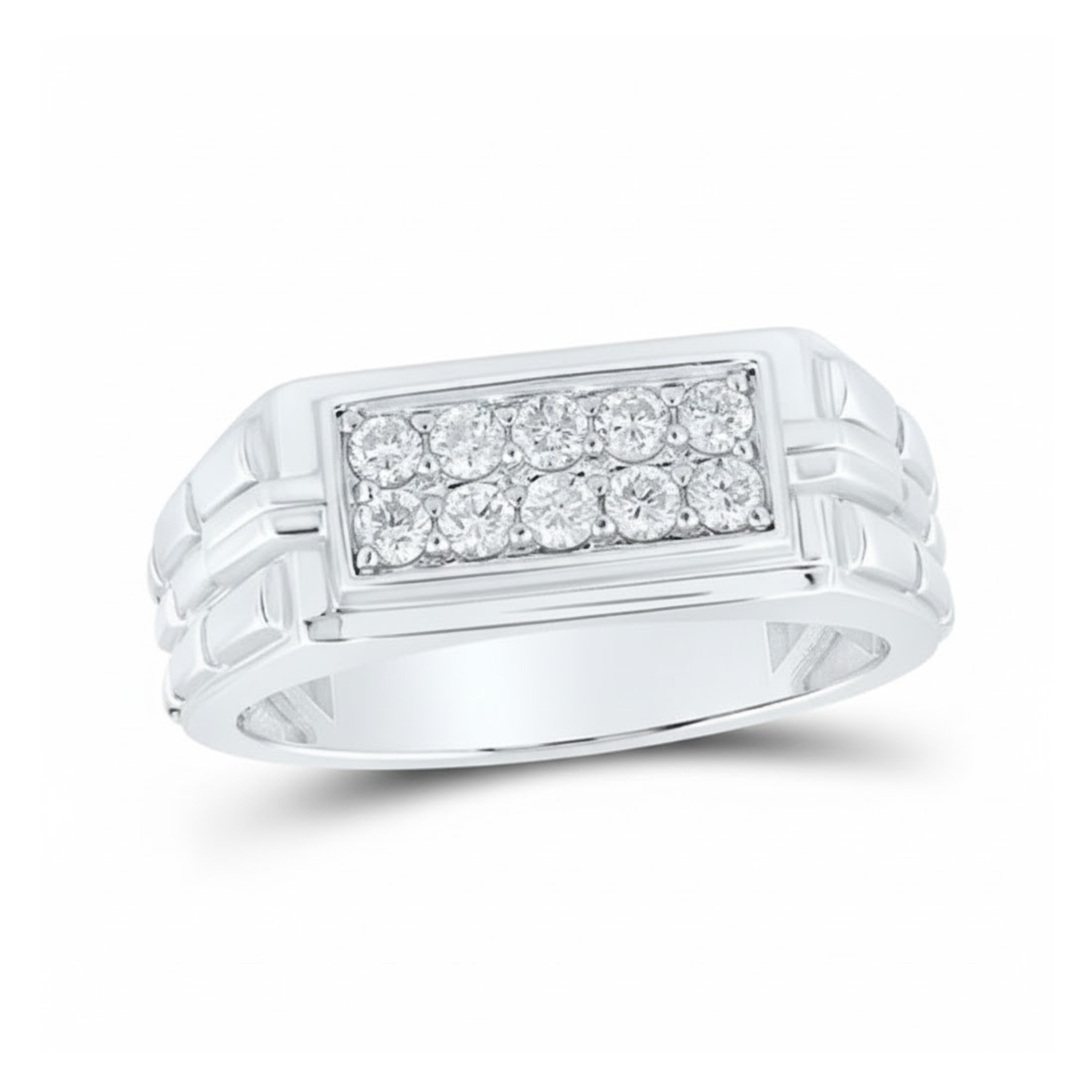 10k White Gold Round Diamond Band Ring 1/2 Cttw