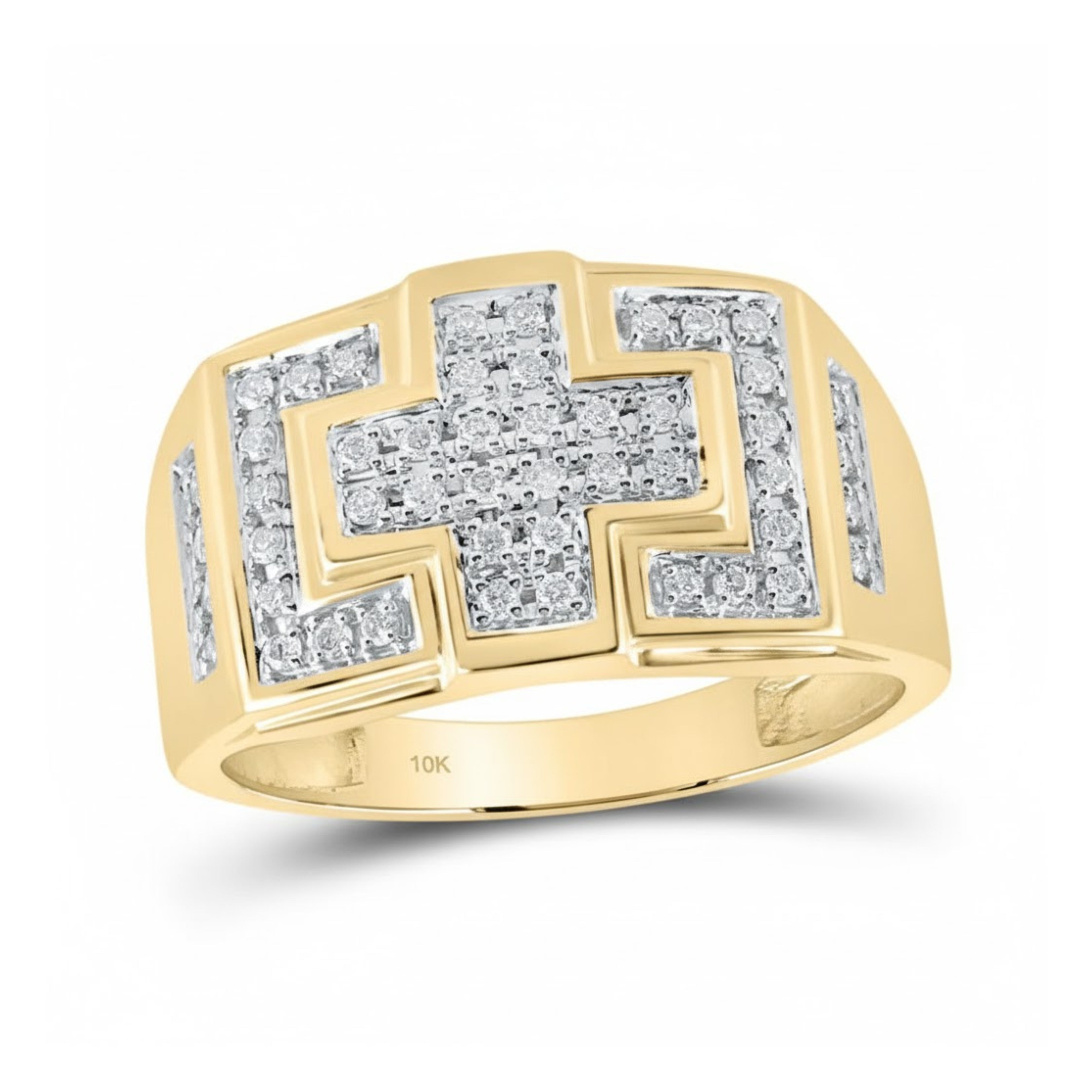 Elevate your faith and style with this stunning 10k Yellow Gold Round Diamond Cross Cluster Ring 1/3 Cttw. Featuring brilliant round-cut diamonds set in a radiant cross design, this ring beautifully symbolizes devotion and timeless elegance. Expertly crafted in luminous 10k yellow gold, it delivers lasting shine and sophistication—perfect for both daily wear and special occasions.