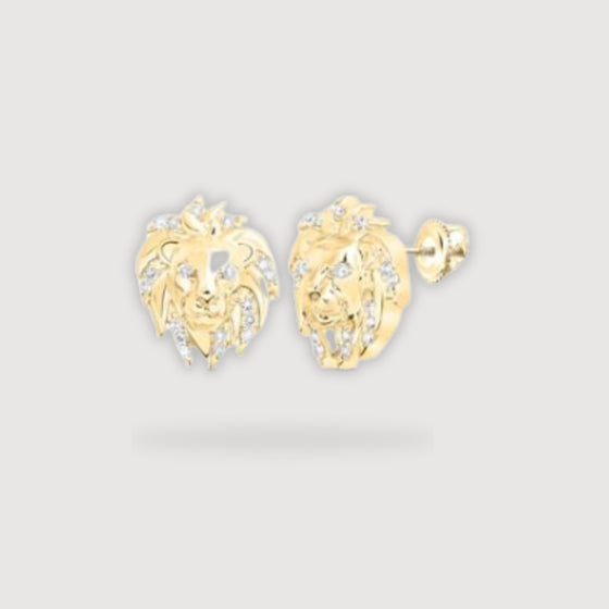 1/12CTW Round Diamond Lion Face Stud Earrings - 10K Yellow Gold
