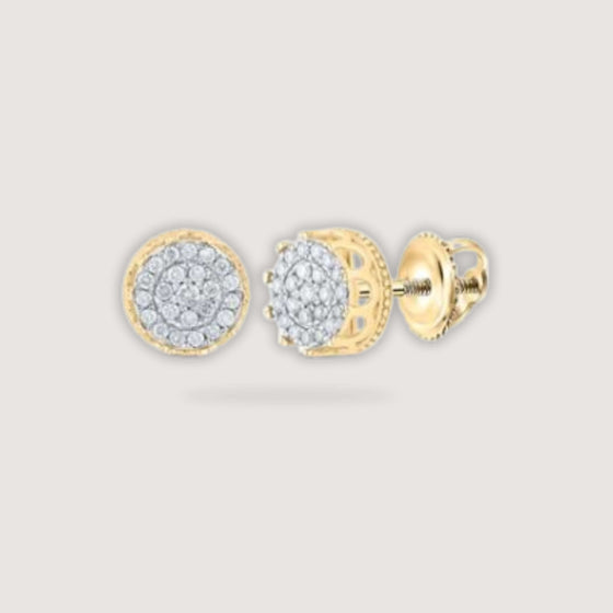 1/2CTW Round Diamond Cluster Stud Earrings - 10K Yellow Gold