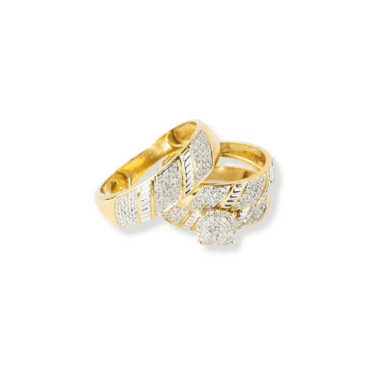 alt=" Discover the 1/3 CTW 10K Yellow Gold Round Cut Wedding Trio Set. Perfect engagement rings for eternal love and commitment. "