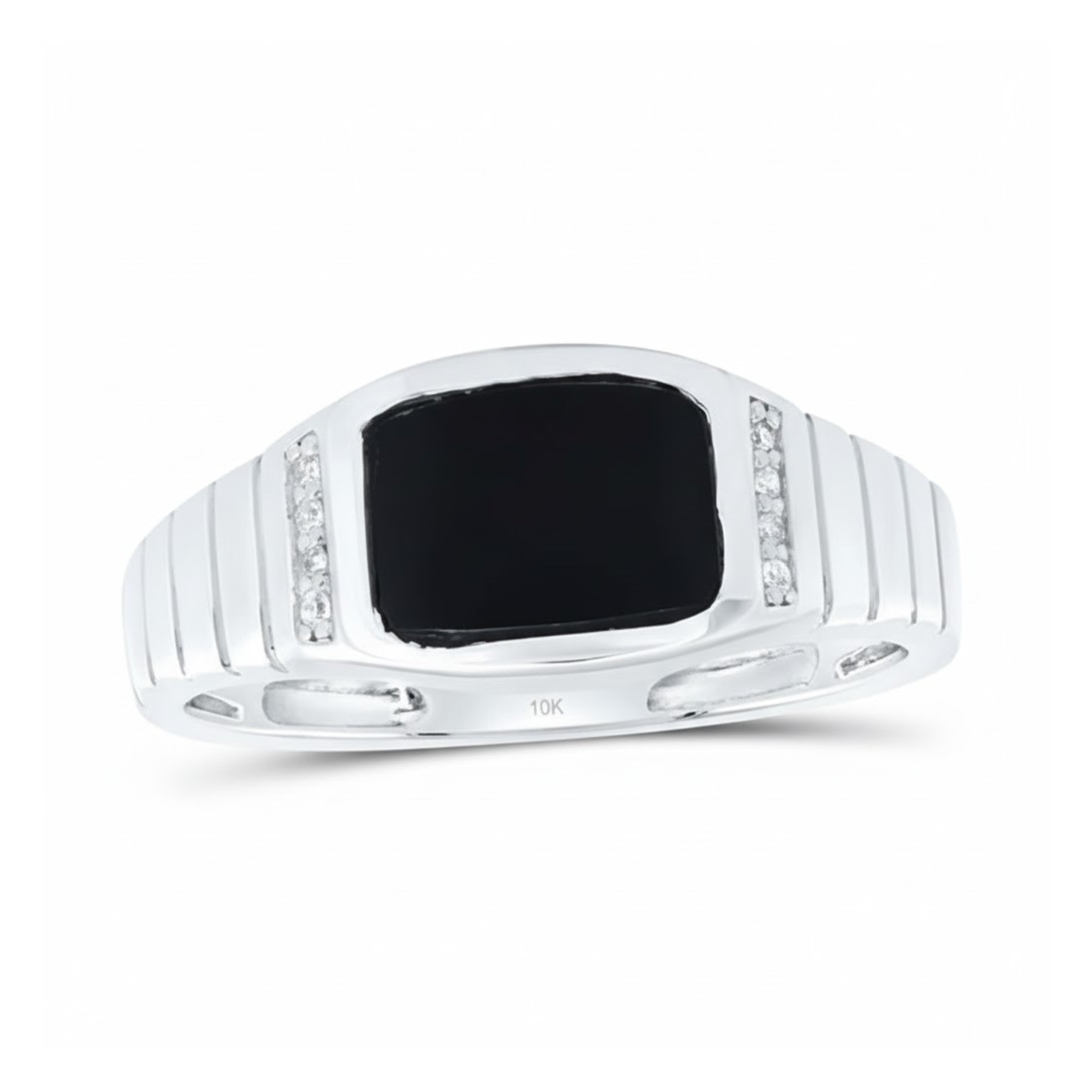 10K White Gold Onyx Black Men’s Ring 1/20 CTTW