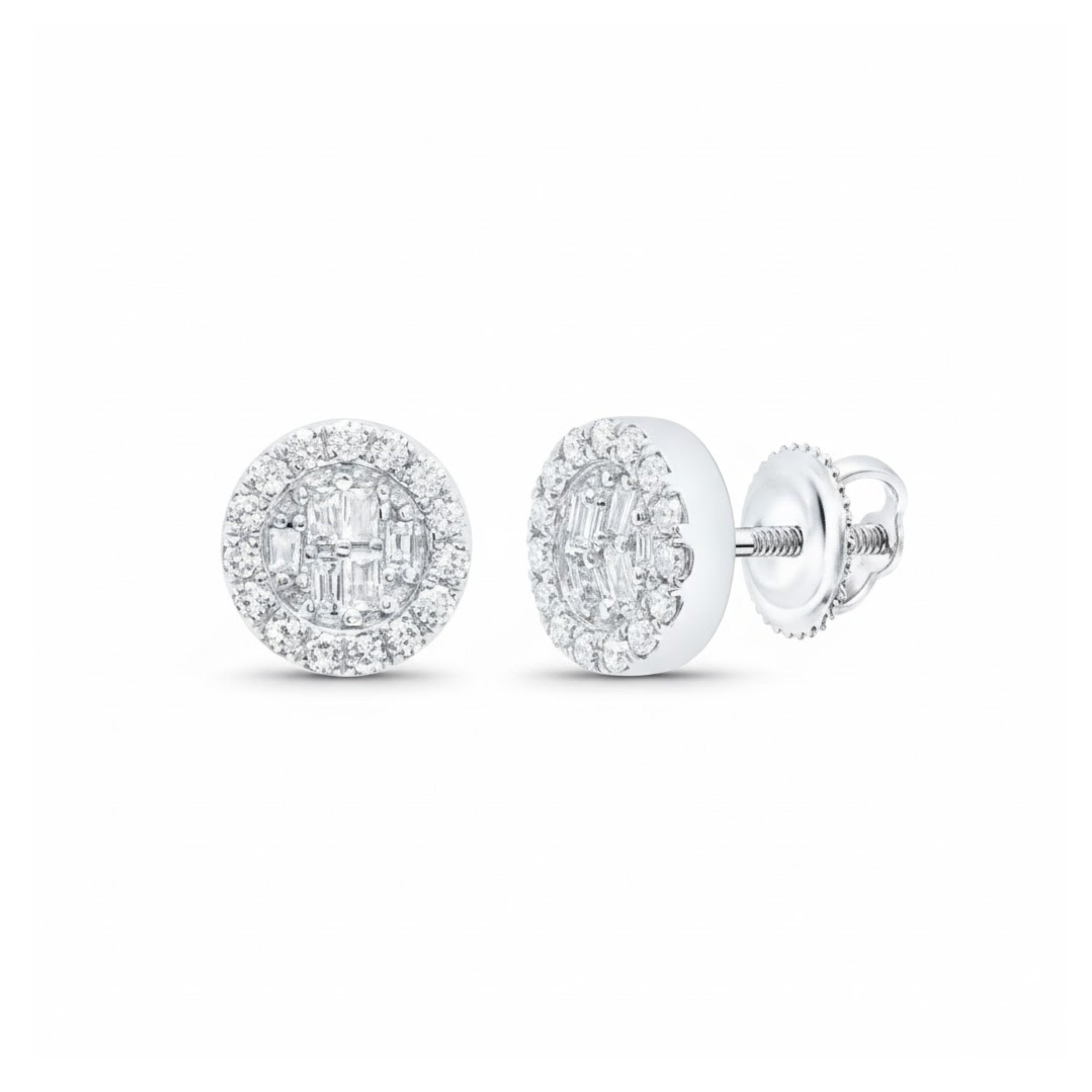 These refined earrings feature a total gemstone carat weight of 1/5CTW, showcasing natural diamonds in a sophisticated round and baguette combination. Expertly crafted in 10k yellow and white gold, they offer timeless elegance suitable for gifting or elevating any everyday look. With a delicate yet eye-catching design, these earrings highlight the brilliance of each diamond, making them a versatile and cherished addition to any jewelry collection.