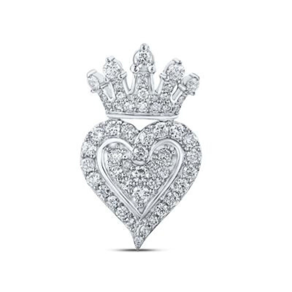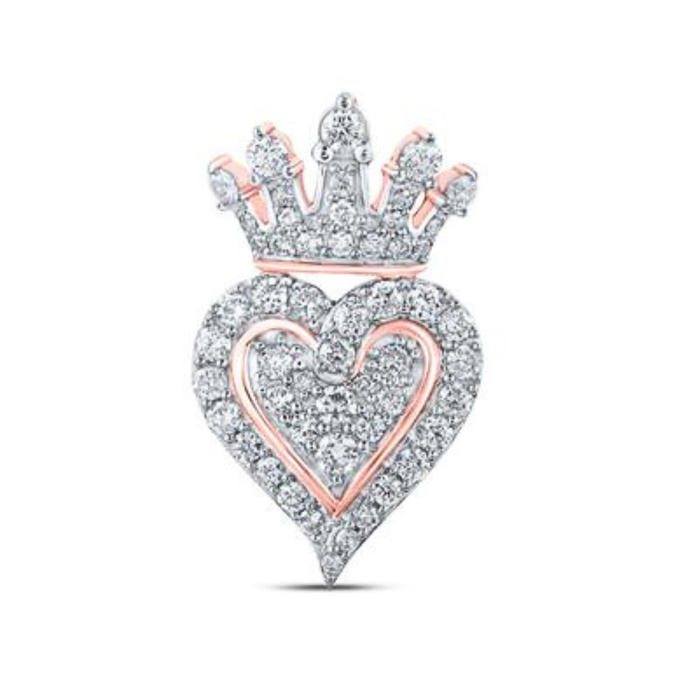 Elevate your jewelry collection with this 10k Gold Round Diamond Crown Heart Pendant 3/4 Cttw, a perfect blend of elegance and charm. Expertly crafted, the pendant features sparkling round diamonds in a regal crown-inspired heart design, radiating brilliance and romance. Whether in luminous white gold or warm rose gold, this piece makes a meaningful gift or a luxurious treat for yourself. Designed for both daily wear and special occasions, its timeless beauty ensures it will remain a cherished accessory for years to come.
