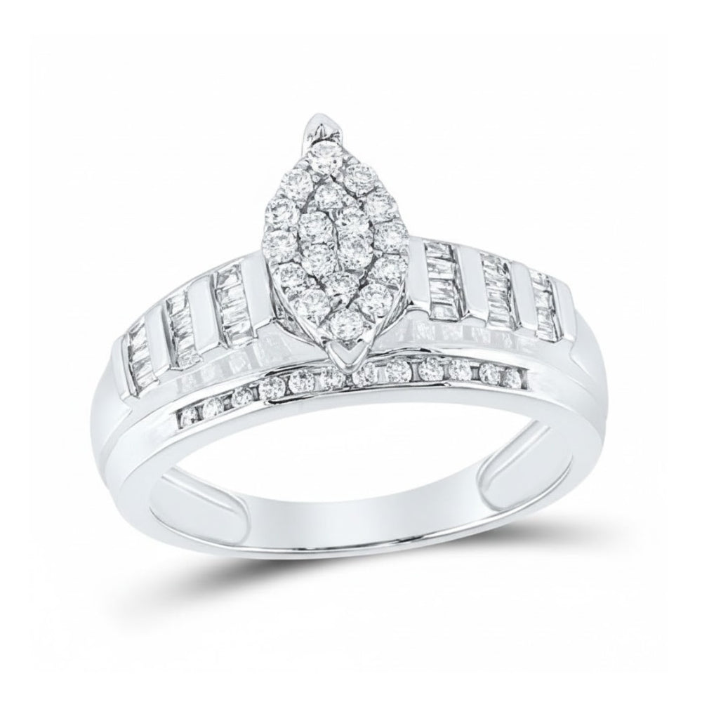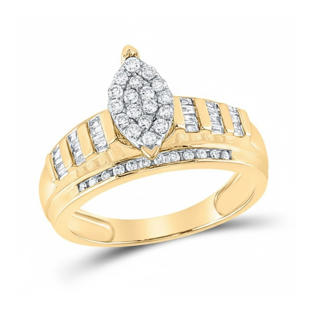 Elevate your love story with this 10k Gold Round Diamond Oval Cluster Bridal Engagement Ring (1/2 Cttw)—a stunning symbol of commitment and elegance. Designed with a captivating oval cluster of round diamonds, this ring delivers eye-catching brilliance from every angle. Crafted in your choice of yellow, white, or rose gold, it combines classic sophistication with modern charm.