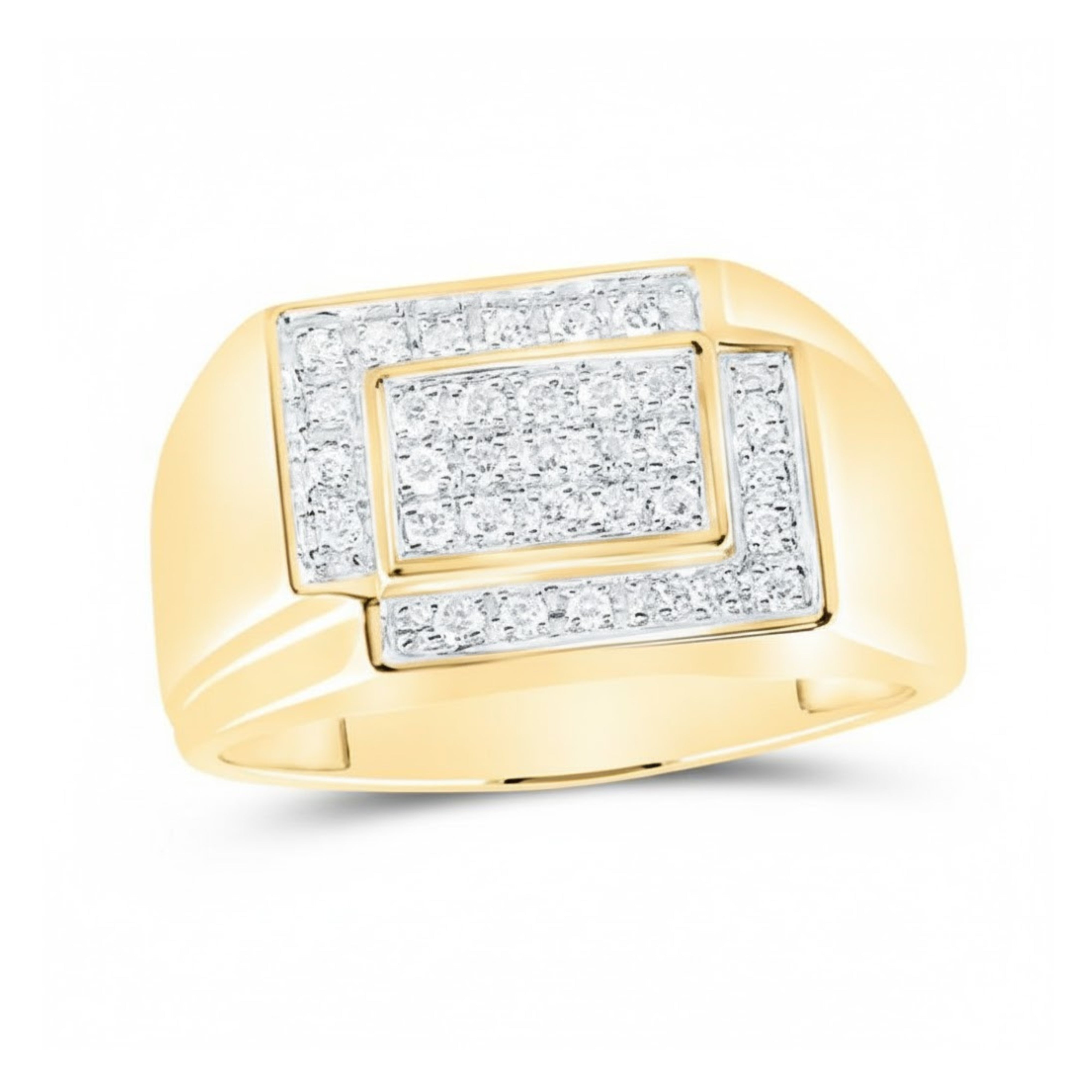 Crafted in radiant 10k yellow gold, this round diamond rectangle cluster ring showcases brilliance and elegance in perfect harmony. The 1/4 Cttw of dazzling round-cut diamonds are artfully arranged in a rectangular cluster setting, reflecting light from every angle. Designed with timeless appeal and refined craftsmanship, this piece exudes sophistication and modern charm. Whether worn daily or on special occasions, it’s a statement of style and confidence that captures lasting brilliance.
