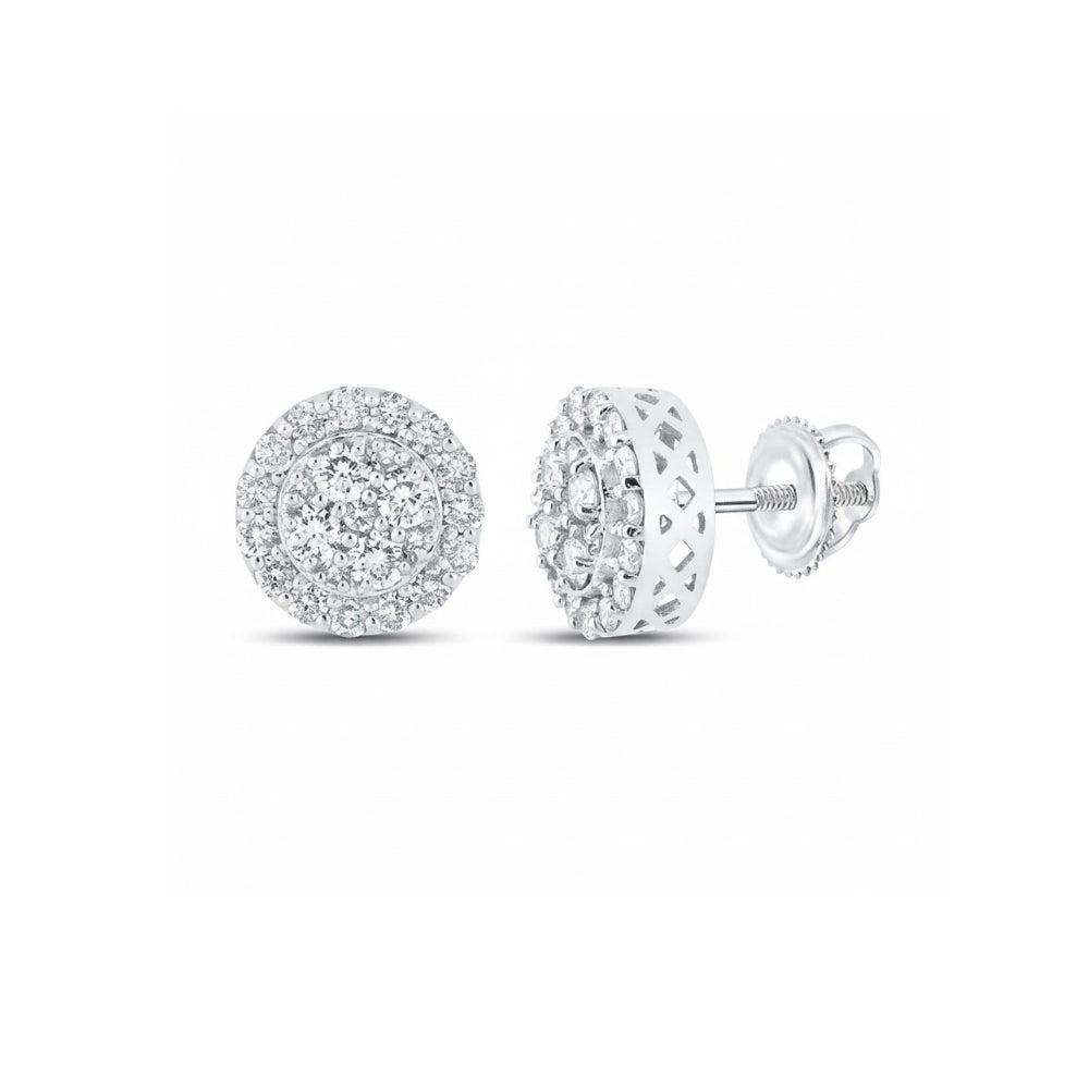 14k Gold Diamond Cluster Earrings 7/8 Cttw