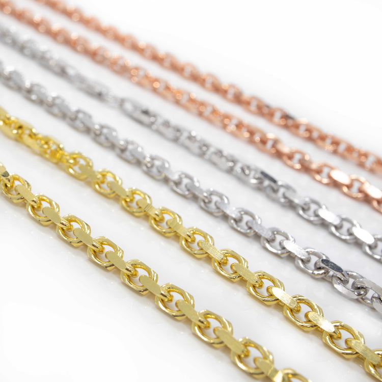 alt=" 3.5mm cable link chain in 14K solid rose gold. Durable, radiant, and versatile for everyday wear or layering with pendants. "