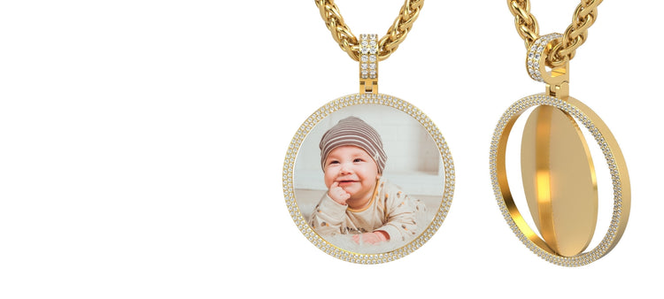 14K Gold Scalloped Oval Diamond Photo Pendant