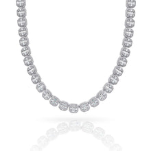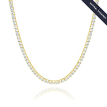 All of our tennis chains are made with 14k gold. You can choose from yellow gold, white gold, or rose gold to match your personal style. The real difference is in the stones: