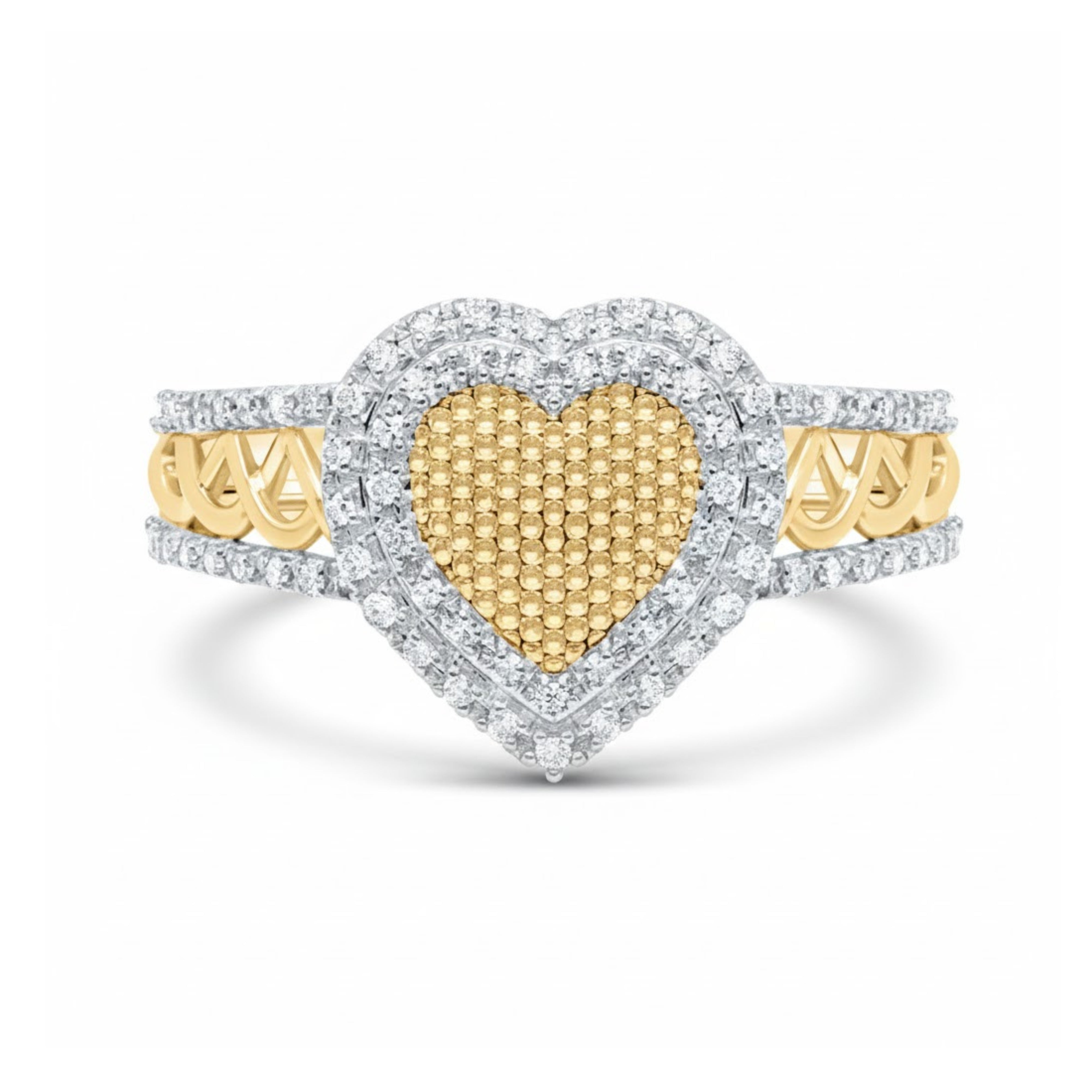 Este encantador anillo de regalo de oro amarillo de 10 quilates presenta un peso total de 1/5 quilates en piedras preciosas y diamantes naturales en un diseño en forma de corazón. Con su delicada artesanía y su brillante elegancia, es el regalo perfecto para aniversarios, cumpleaños o cualquier ocasión especial.