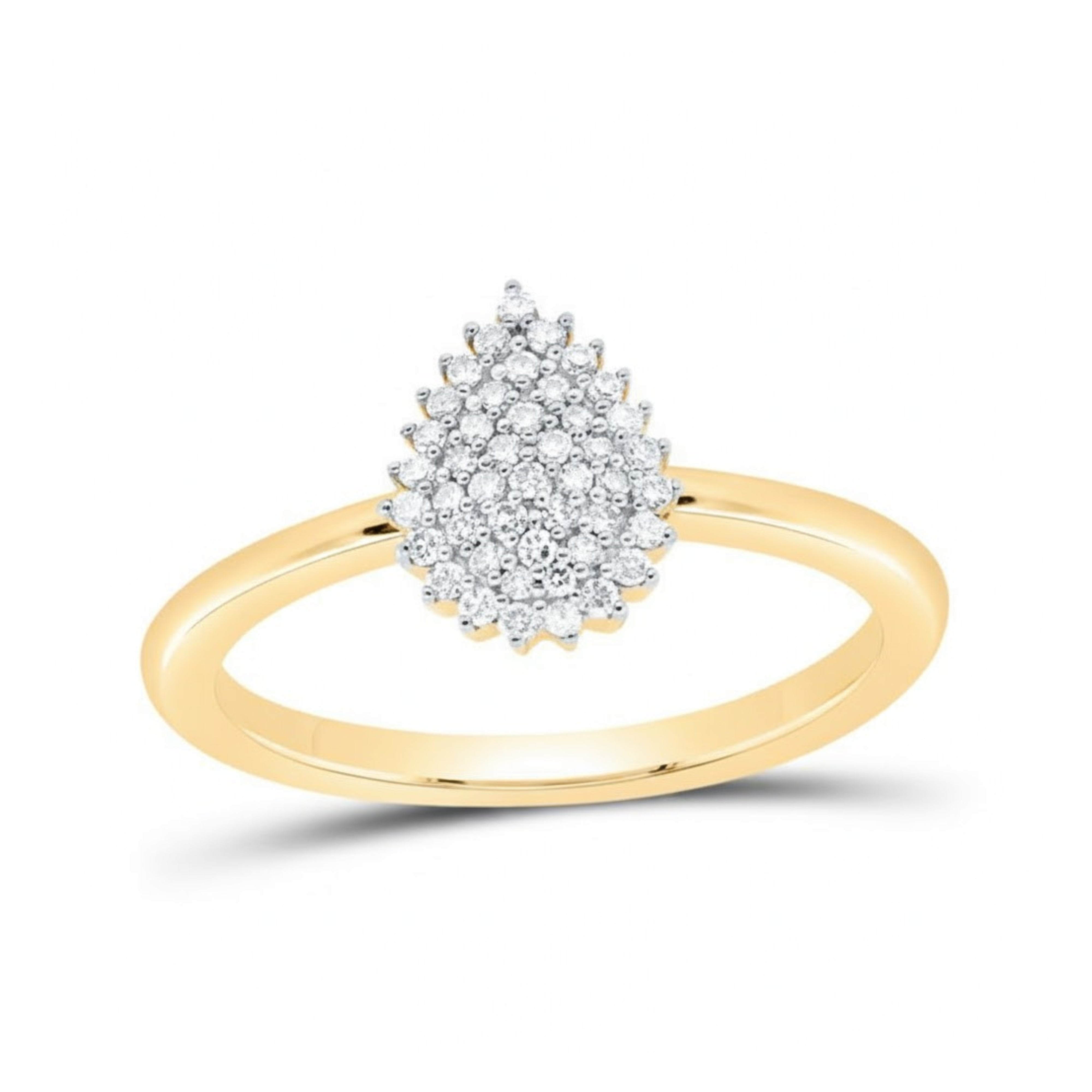 Este anillo de regalo de oro amarillo de 10 quilates con diamantes en forma de pera presenta un peso total de 1/6 quilates, cuidadosamente engastado para una elegancia duradera y un atractivo atemporal. Perfecto para ocasiones especiales o como un regalo especial, este anillo combina un diseño clásico con una artesanía superior.