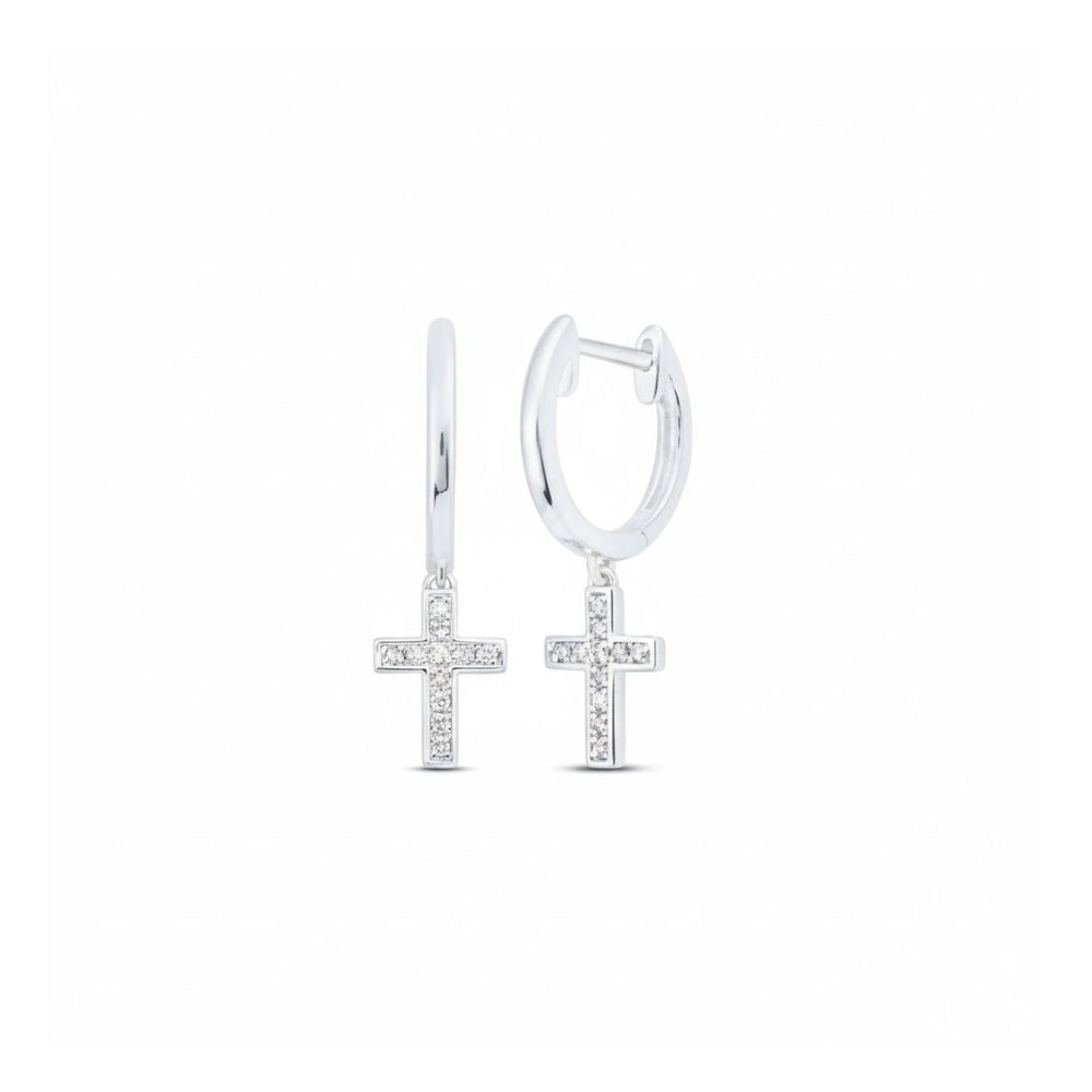 This elegant pair of 10k gold round diamond cross dangle earrings features a total gemstone carat weight of 1/20 CTW. Each round diamond is prong-set, weighing 0.05 CT, and designed to catch the light beautifully. With a total approximate weight of 1.64 grams, these earrings offer a delicate, faith-inspired style perfect for gifting or everyday wear.