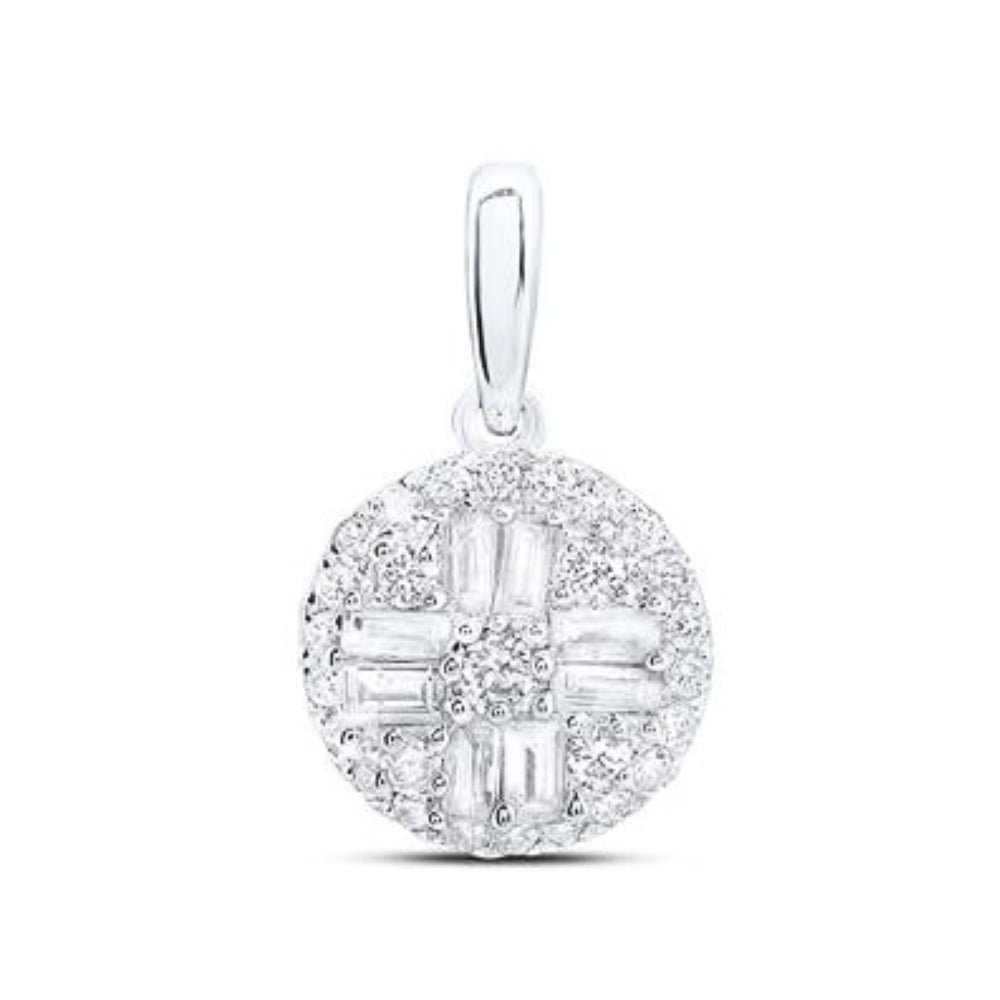 Colgante baguette redondo con diamantes de 1/3 quilates en oro de 10 quilates