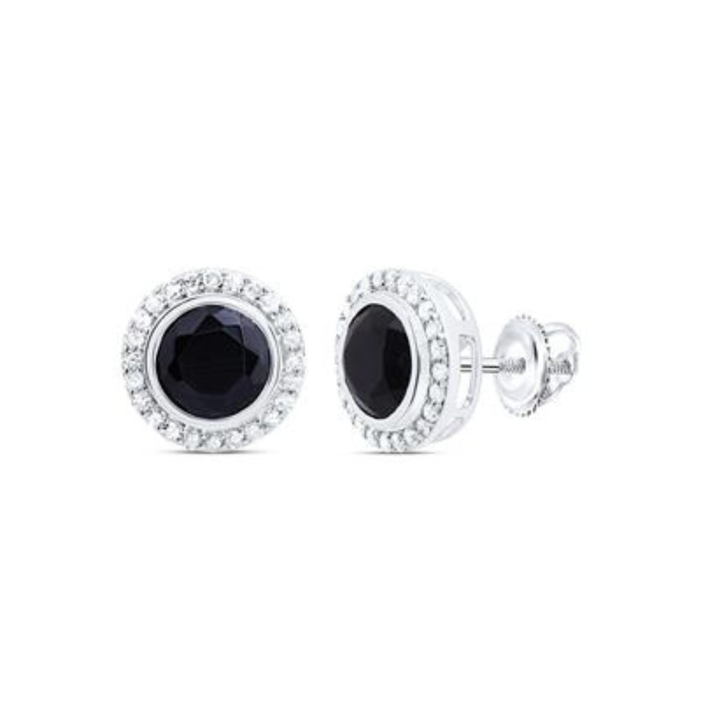 Pendientes de ónix negro redondo con diamantes de 1/4 CTW