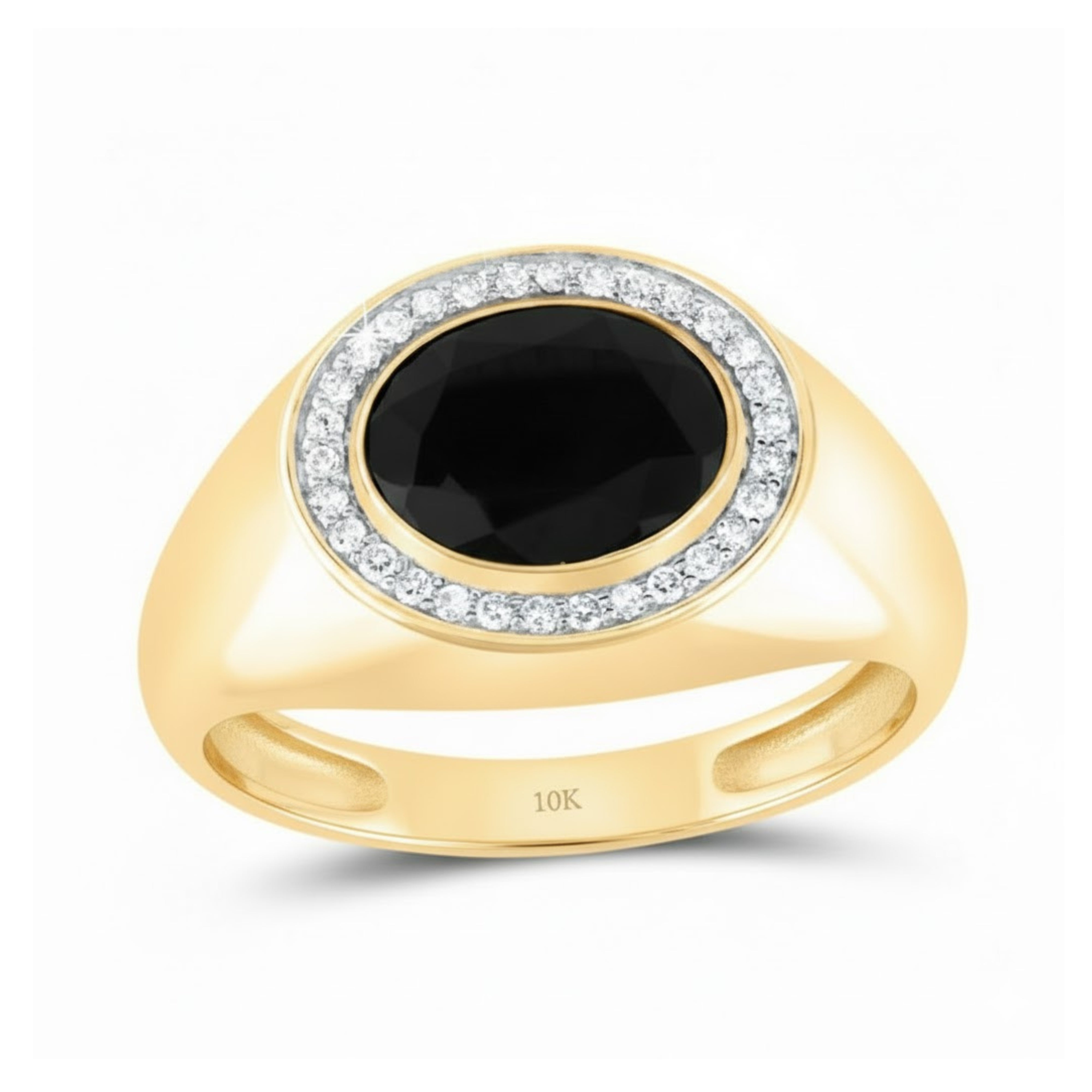Anillo de oro de 10 quilates con ónix negro y diamantes para hombre (peso neto de 1/6 quilates)
