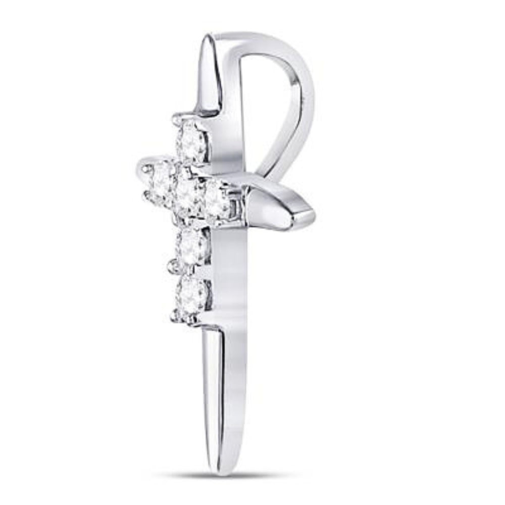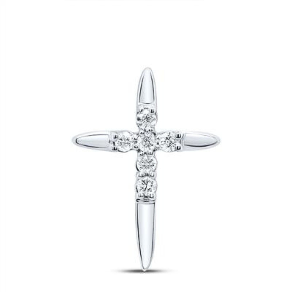 Colgante de cruz de diamantes en oro blanco de 10 k (1/10 quilates)
