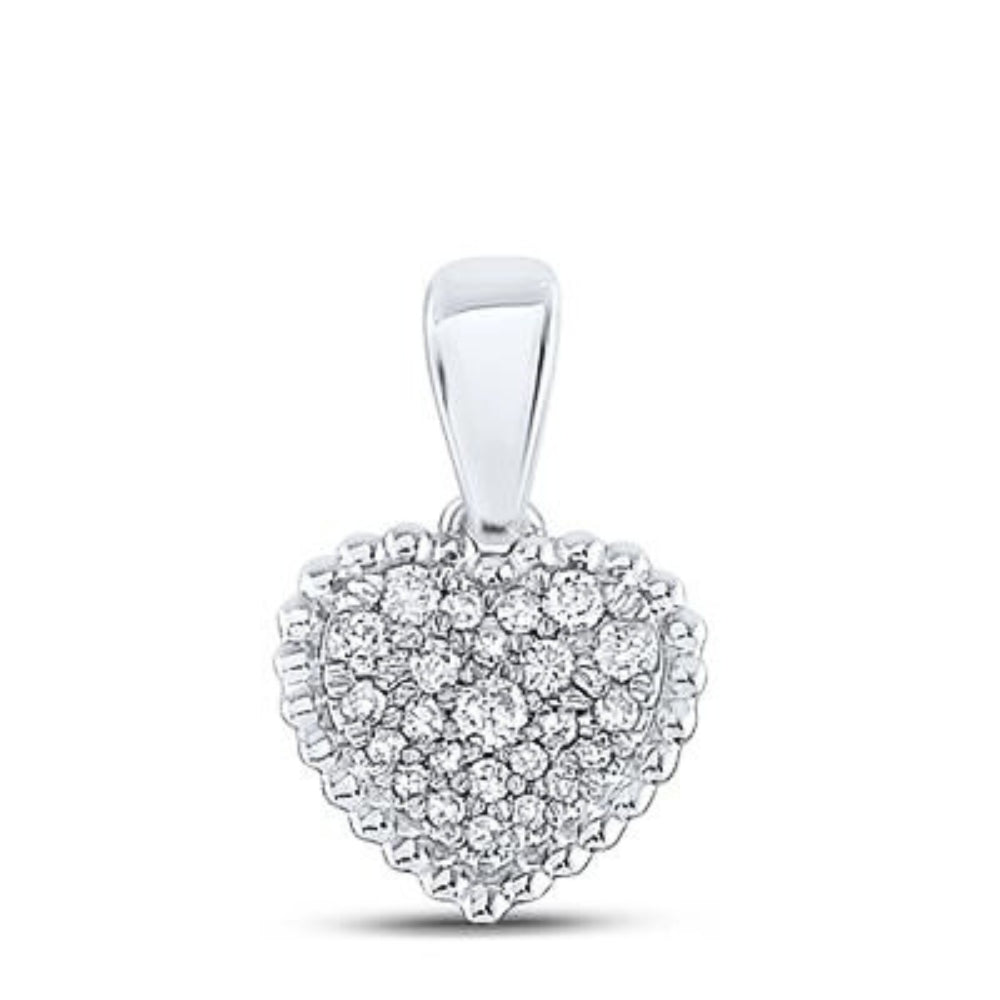 Este colgante de oro de 10 quilates tiene un peso aproximado de 0,703 gramos y un peso total de 1/8 en quilates por diamante. Los diamantes redondos principales, engastados en garra para un brillo máximo, tienen un peso combinado de 0,12 en quilates. Con 14,7 mm de largo y 9,3 mm de ancho, este colgante ofrece un brillo refinado con una presencia delicada y elegante, perfecto para añadir un encanto atemporal a cualquier look.