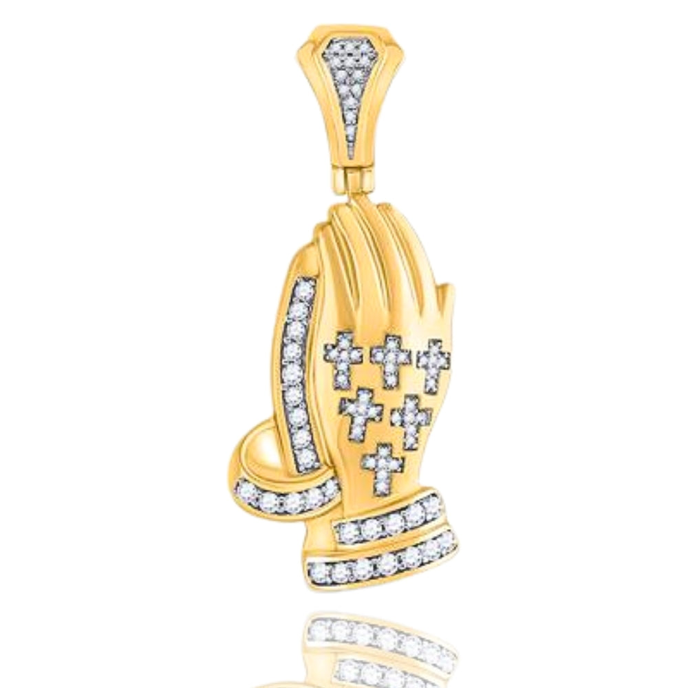 Colgante de cruz con manos en oración y diamantes en oro de 10 quilates (5/8 quilates)