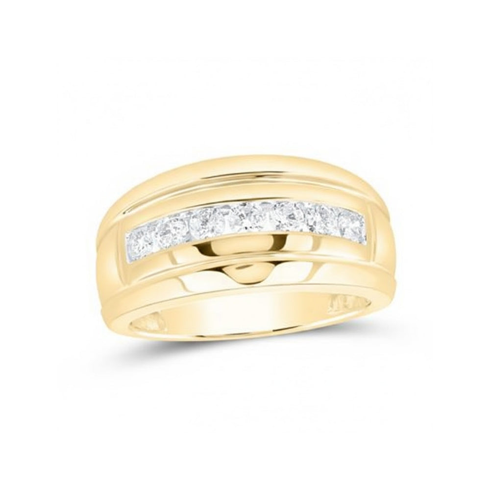 Este exquisito anillo de bodas de oro amarillo de 10 quilates con diamantes estriados exhibe una elegancia atemporal y una brillante artesanía. Con un peso total de 3/4 quilates de brillantes diamantes redondos, cada gema está engastada con maestría para capturar el máximo brillo y sofisticación. El diseño estriado añade un toque moderno a su forma clásica, simbolizando fuerza y ​​compromiso eterno. Perfecto como anillo de bodas o de aniversario, este anillo de diamantes irradia lujo, convirtiéndolo en una expresión significativa de amor y devoción eternos.