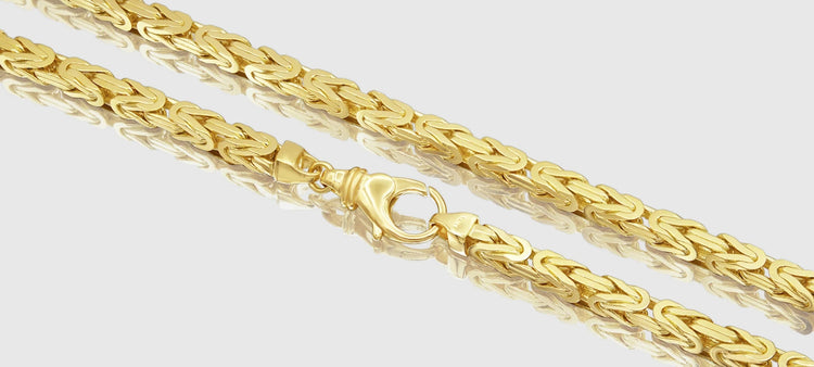 alt= " Discover GOLDZENN’s 9mm Byzantine Chain, crafted in premium gold with intricate interlocking links. "