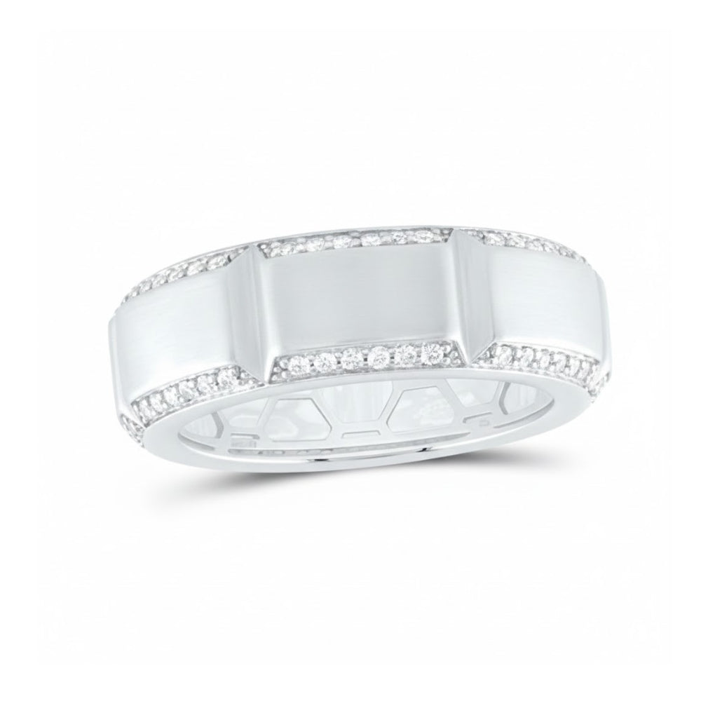 Estebanda de hombrescuenta con un totalpeso en quilates del diamante de 5/8 quilates, meticulosamente elaborado con un diseño duradero y elegante. Elaborado con aproximadamentepeso en gramos de 9,61, la banda mide8 mm de longitudy26,5 mm de ancho, ofreciendo un look atrevido y atemporal que combina elegancia con facilidad de uso diario.