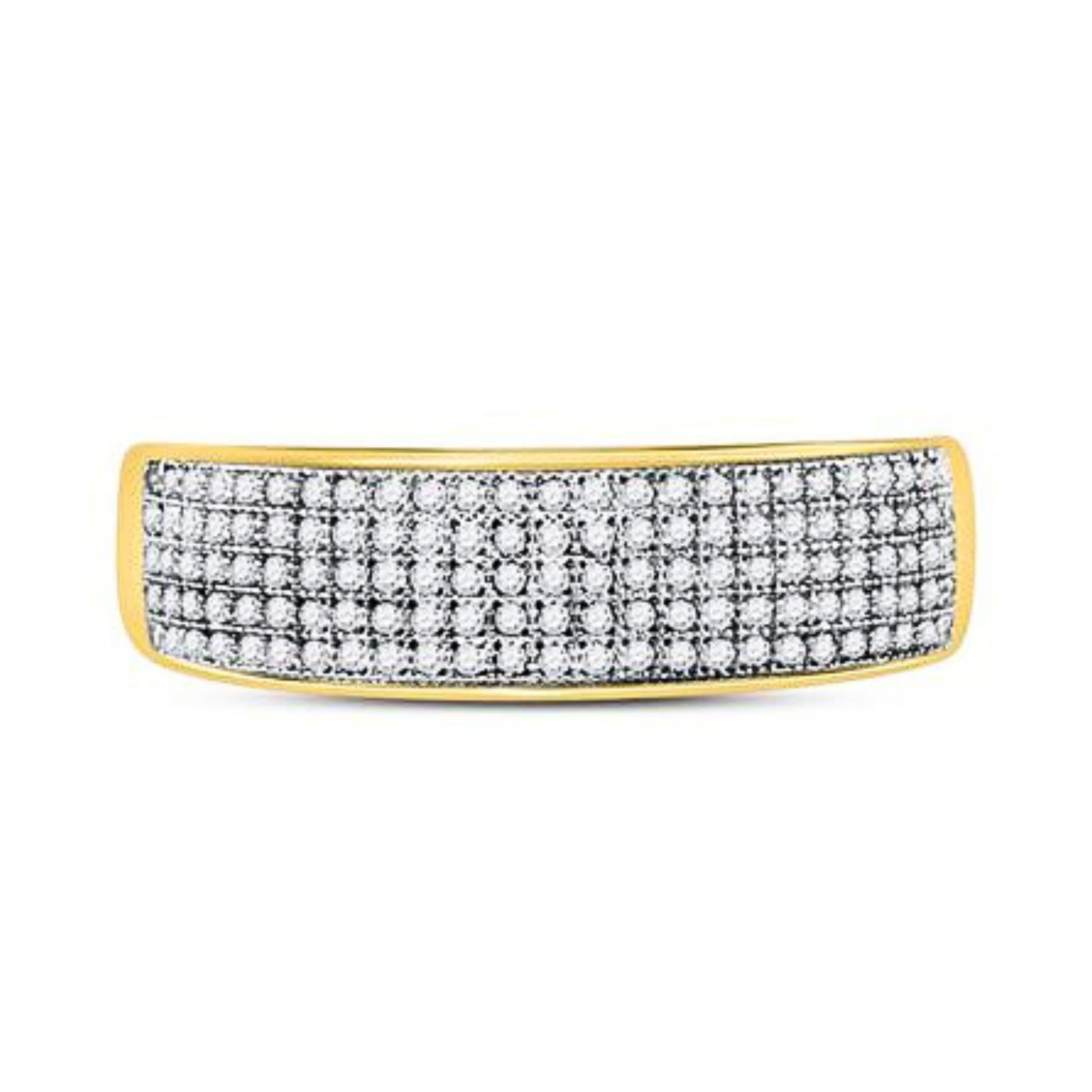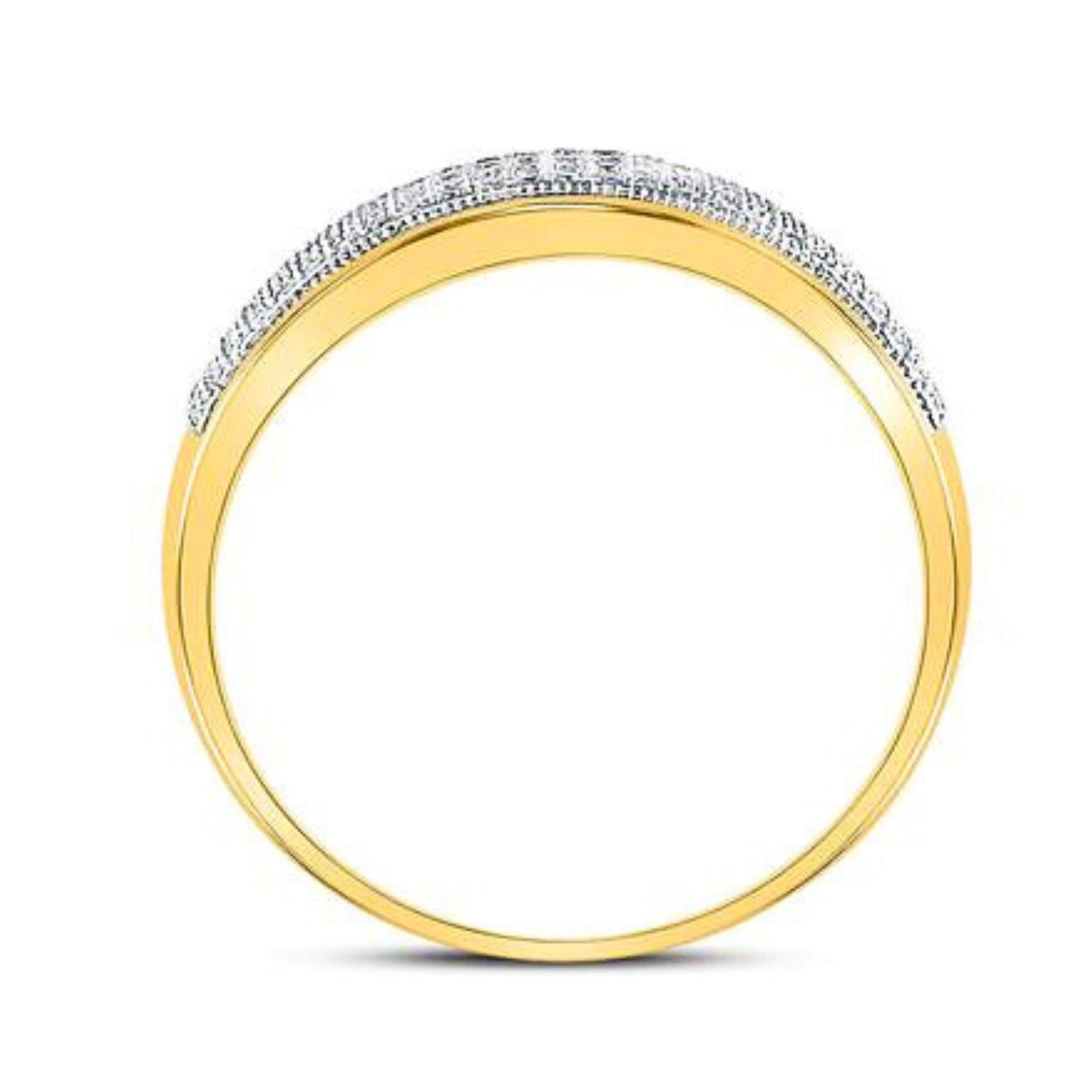 Este anillo de bodas de oro de 10 quilates con diamantes redondos de 3/8 quilates irradia sofisticación y brillo atemporales. Elaborado por expertos con un peso aproximado de 3,58 gramos, este elegante anillo luce 0,40 quilates de deslumbrantes diamantes de talla redonda en un engaste seguro, que ofrece máximo brillo y durabilidad. Con 6,4 mm de ancho, su refinado diseño combina comodidad y lujo, lo que lo convierte en la opción perfecta para bodas, aniversarios o como símbolo de amor eterno.