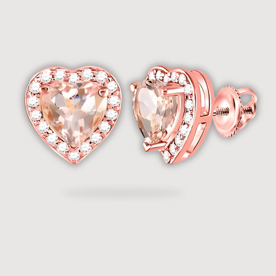 1-1/2CTW Morganite Heart Diamond Stud Earrings - 10K Rose Gold