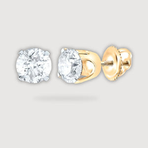 alt=" Discover 1CTW diamond solitaire earrings in 14k gold. Perfect for any attire, these earrings are sure to captivate attention. "