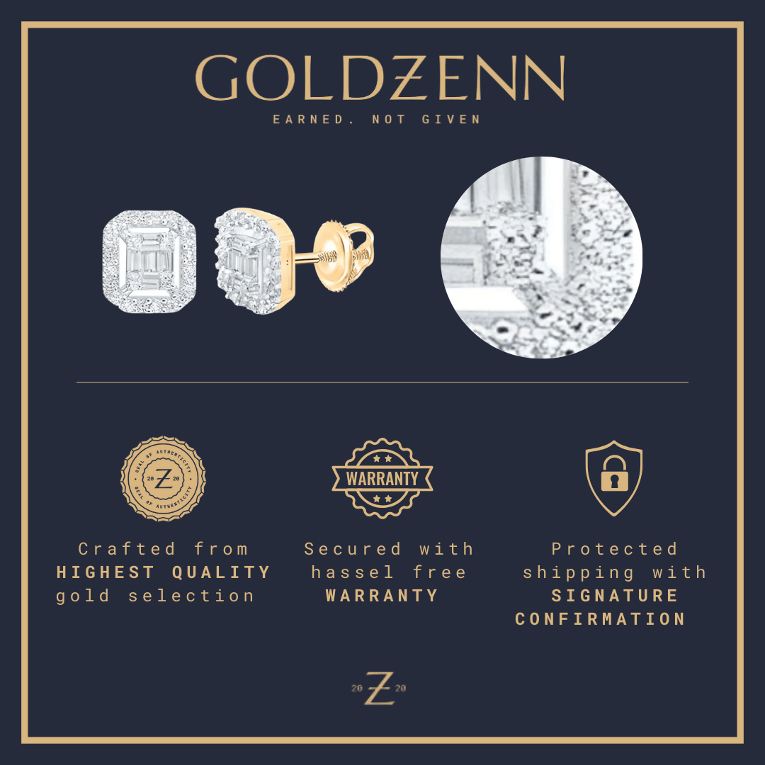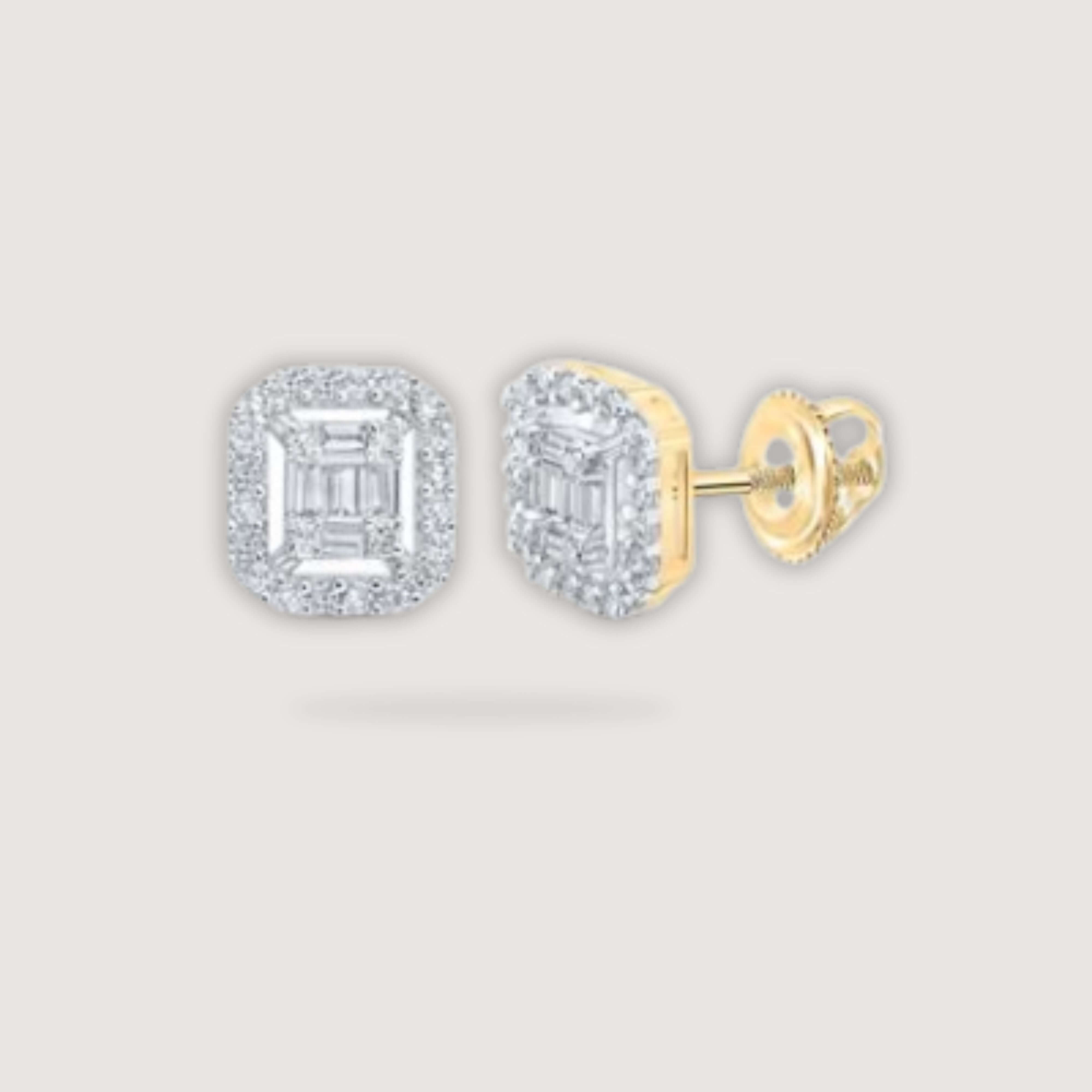 1/4CTW Baguette Diamond Cluster Earrings - 10K Yellow Gold