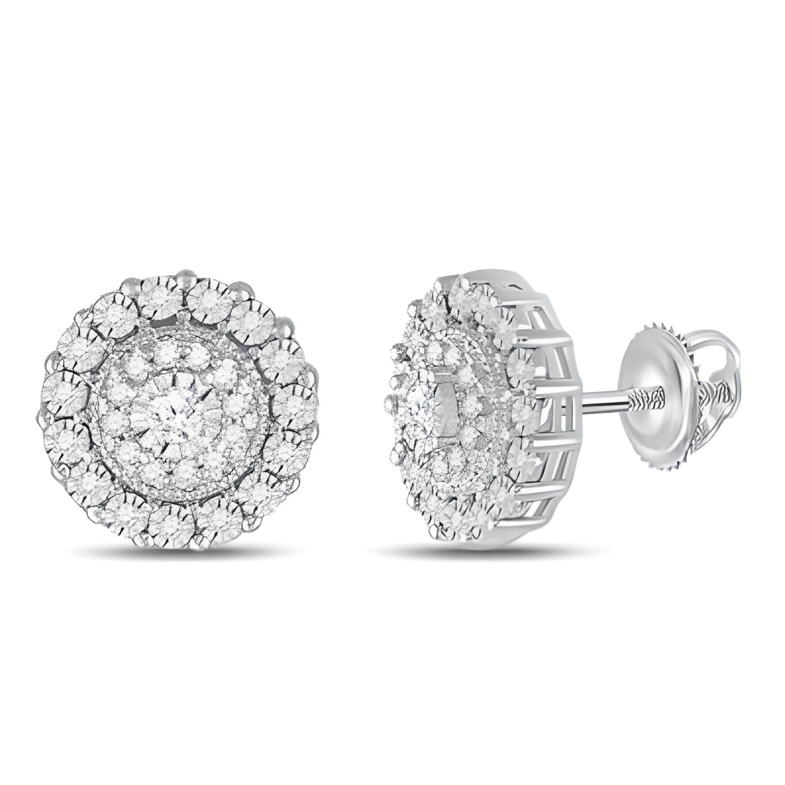 Elevate your jewelry collection. These round diamond fashion cluster earrings in 10k white gold are versatile and can be effortlessly paired with both casual and formal attire. Whether worn for a special occasion or as an everyday accessory, they are sure to draw admiration and capture attention.