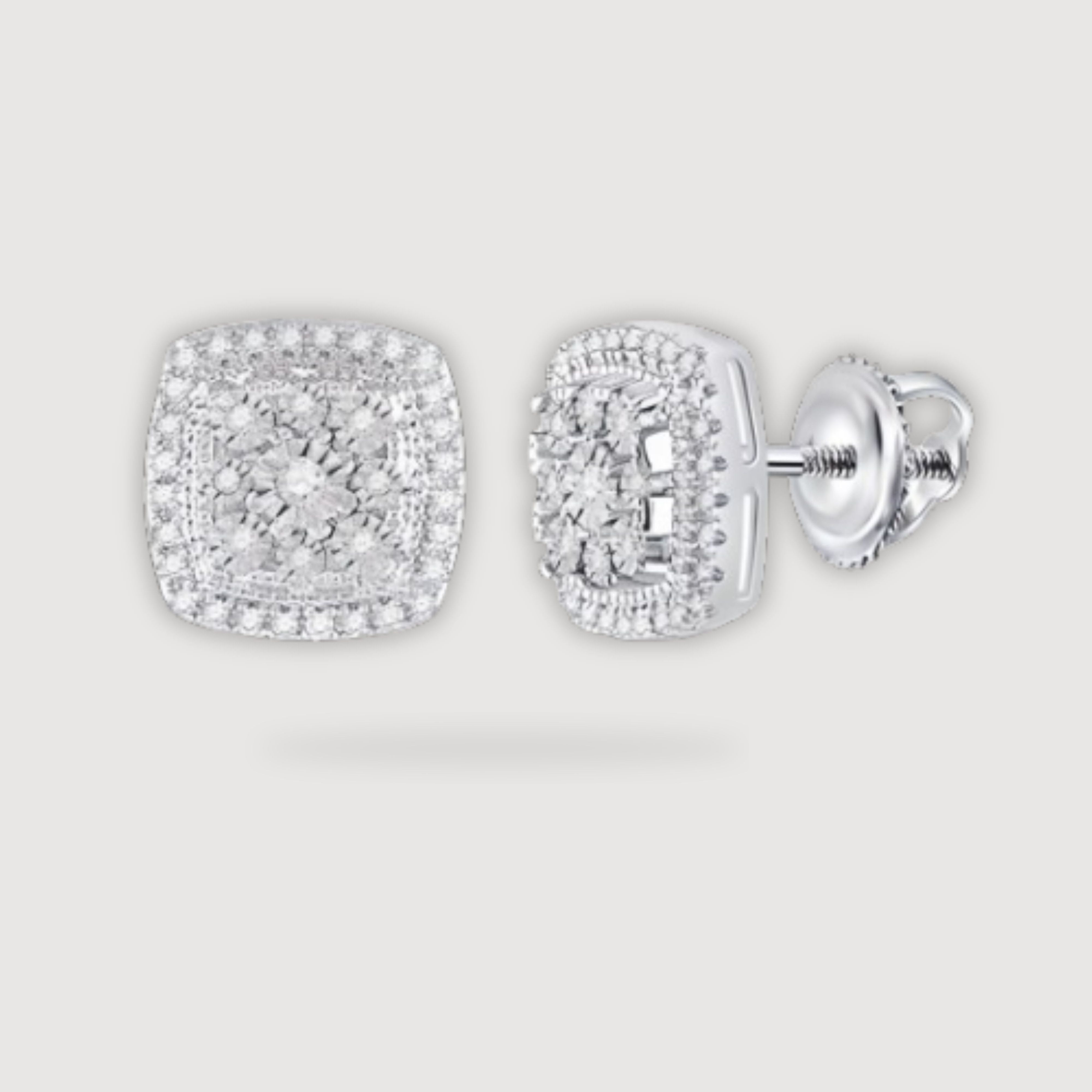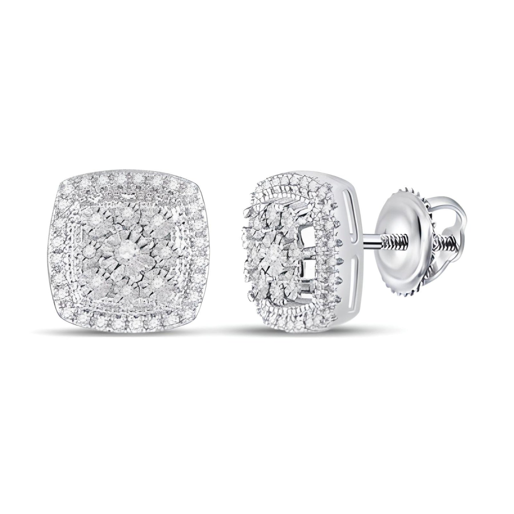 Elevate your jewelry collection. These round diamond fashion halo stud earrings in 10K White Gold are versatile and can be effortlessly paired with both casual and formal attire. Whether worn for a special occasion or as an everyday accessory, they are sure to draw admiration and capture attention.