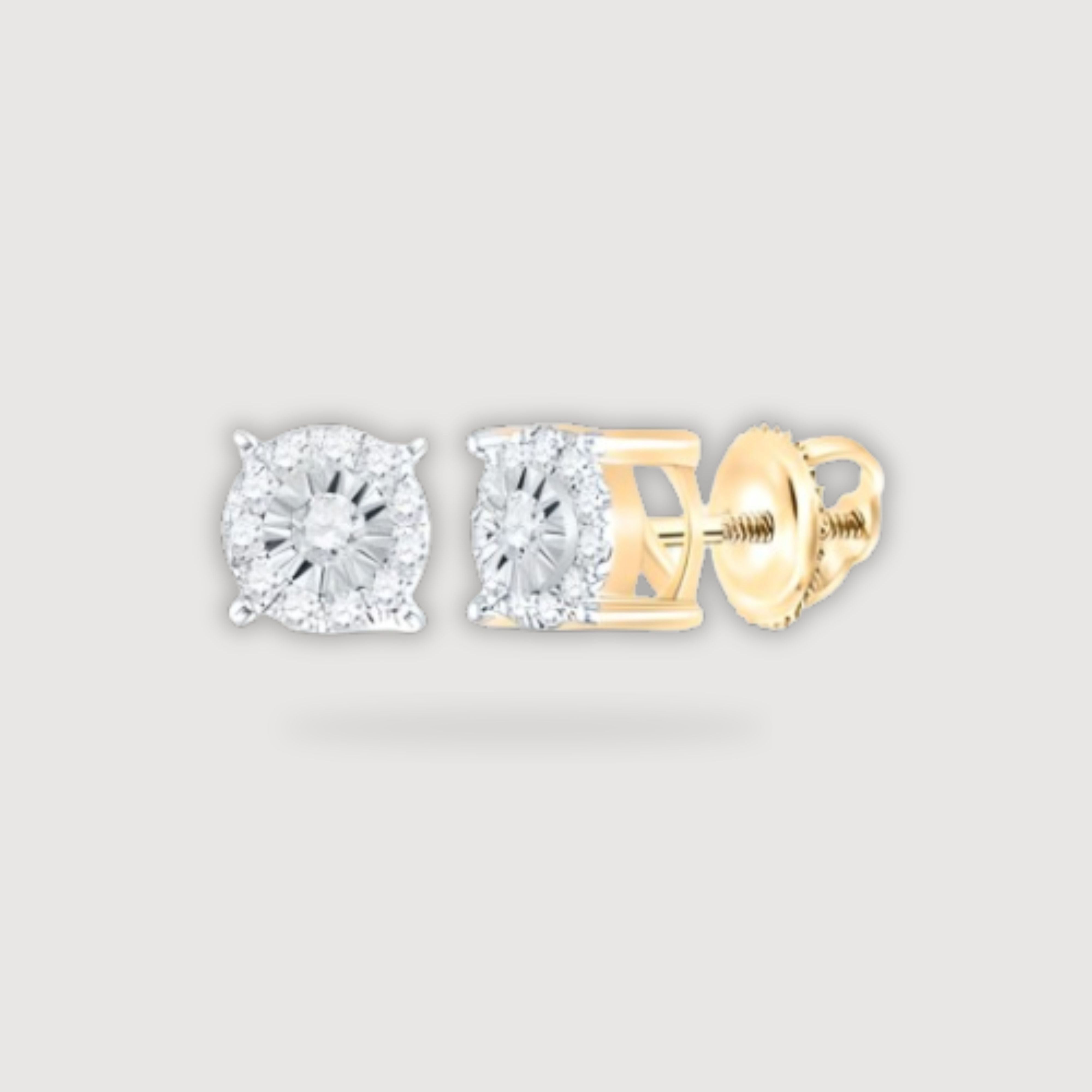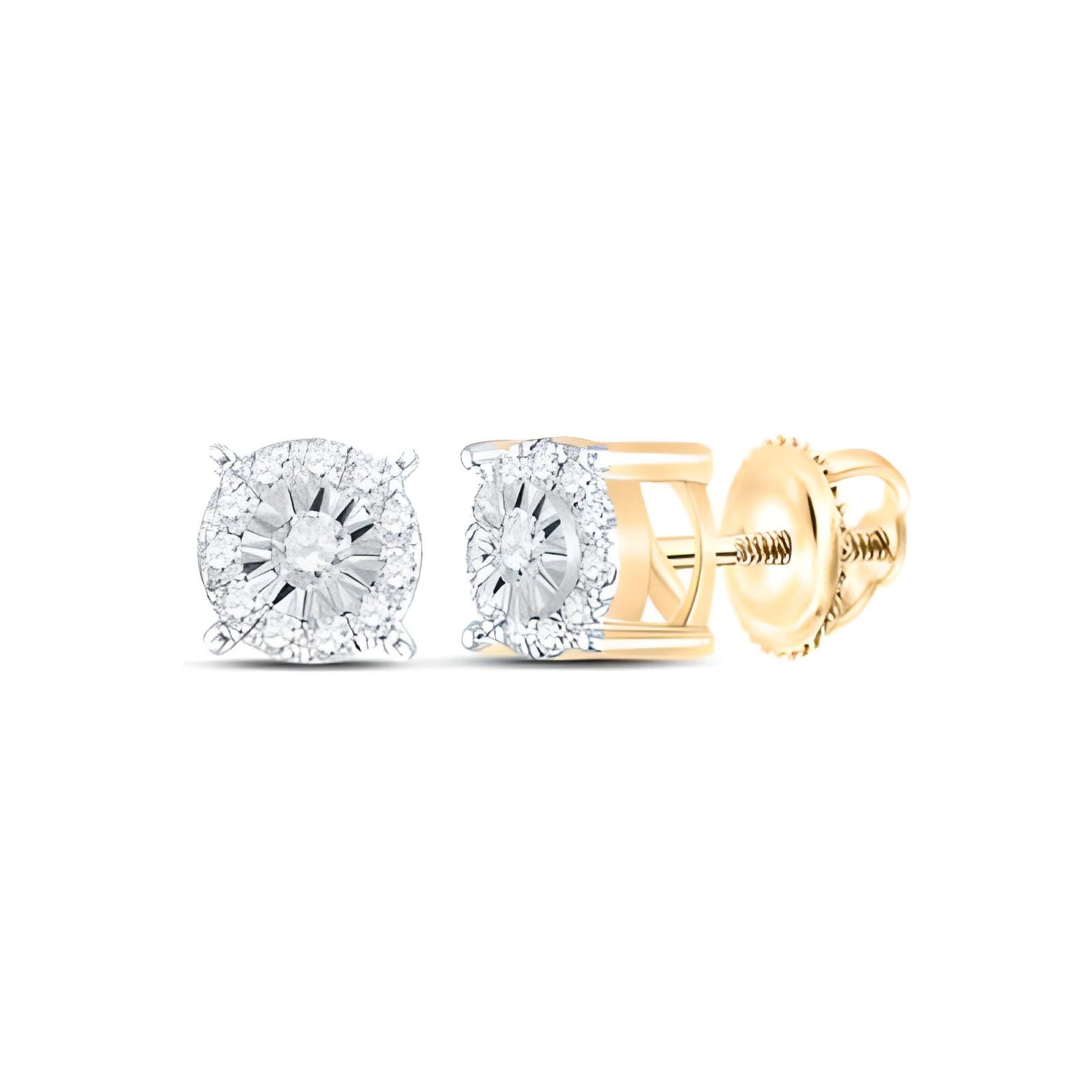1/5CTW Round Diamond Halo Stud Earrings - 10K Yellow Gold