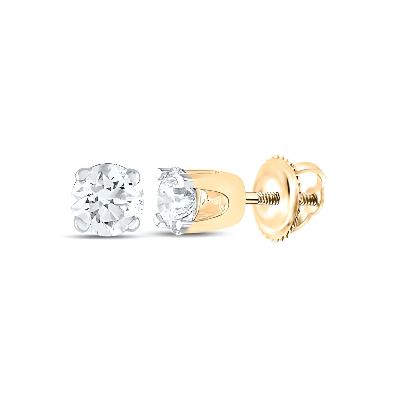 Elevate your jewelry collection. These round diamond stud earrings in 14k yellow gold are versatile and can be effortlessly paired with both casual and formal attire. Whether worn for a special occasion or as an everyday accessory, they are sure to draw admiration and capture attention.
