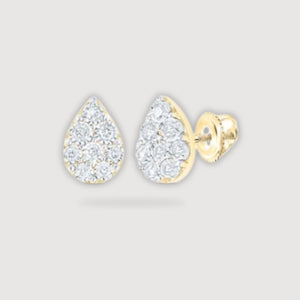 alt=" Discover 1/5CTW round diamond teardrop gold earrings, blending spiritual significance with elegant style. Perfect for adding sparkle to any outfit. "