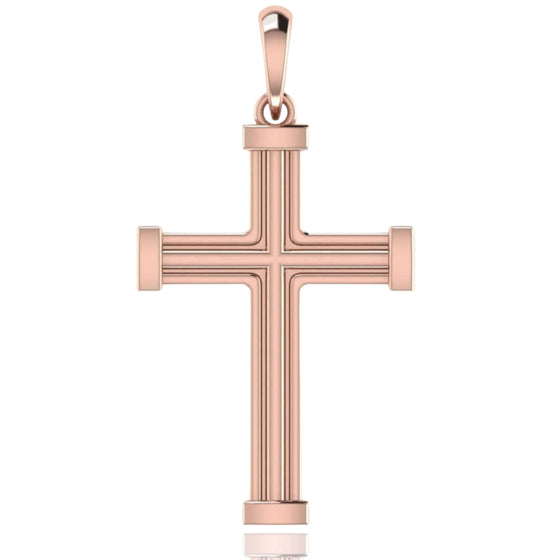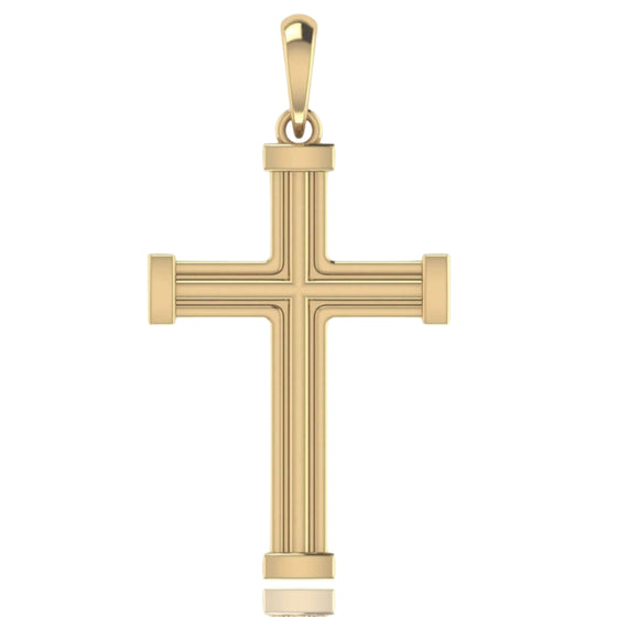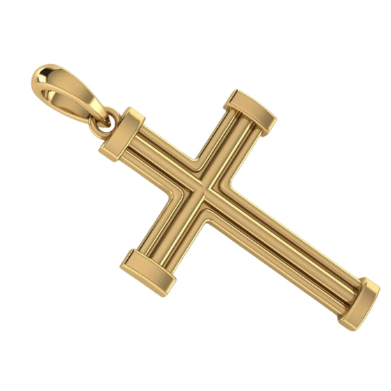 Alt="Discover modern elegance with the 14K Gold Barrel Edge Cross Pendant. Features a sleek barrel-edge design in radiant 14K gold for a bold and sophisticated look."