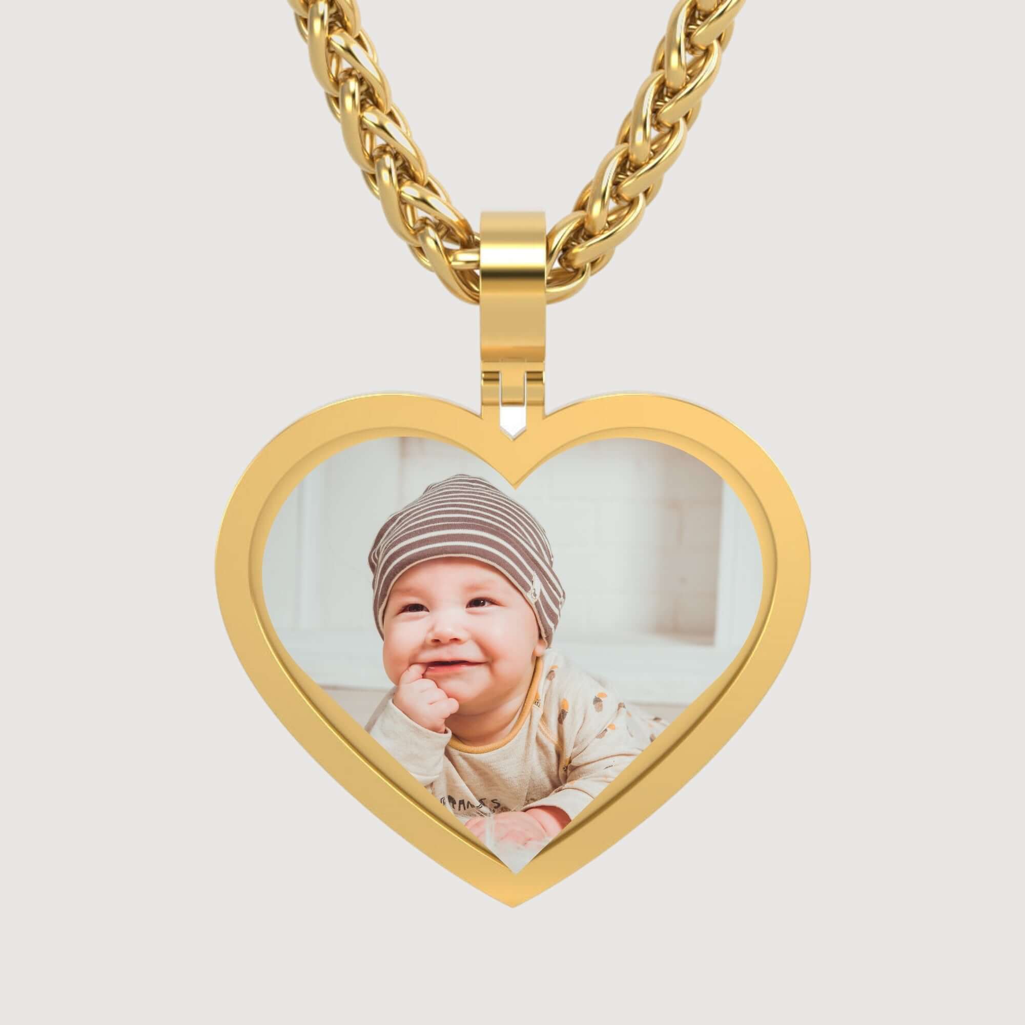 alt=" Crafted in 14K gold, this classic heart picture pendant features a polished design, perfect for showcasing your treasured memories with timeless elegance. "
