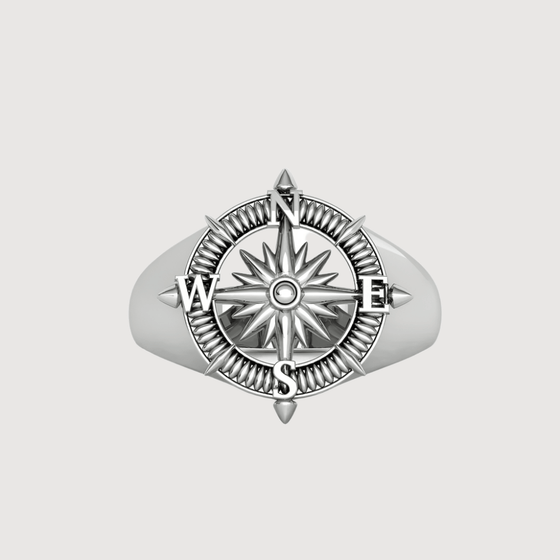 alt=" 14k gold compass ring with a nautical star design. Bold and meaningful, ideal for fans of gold rings, men gold rings, and timeless mens rings. "