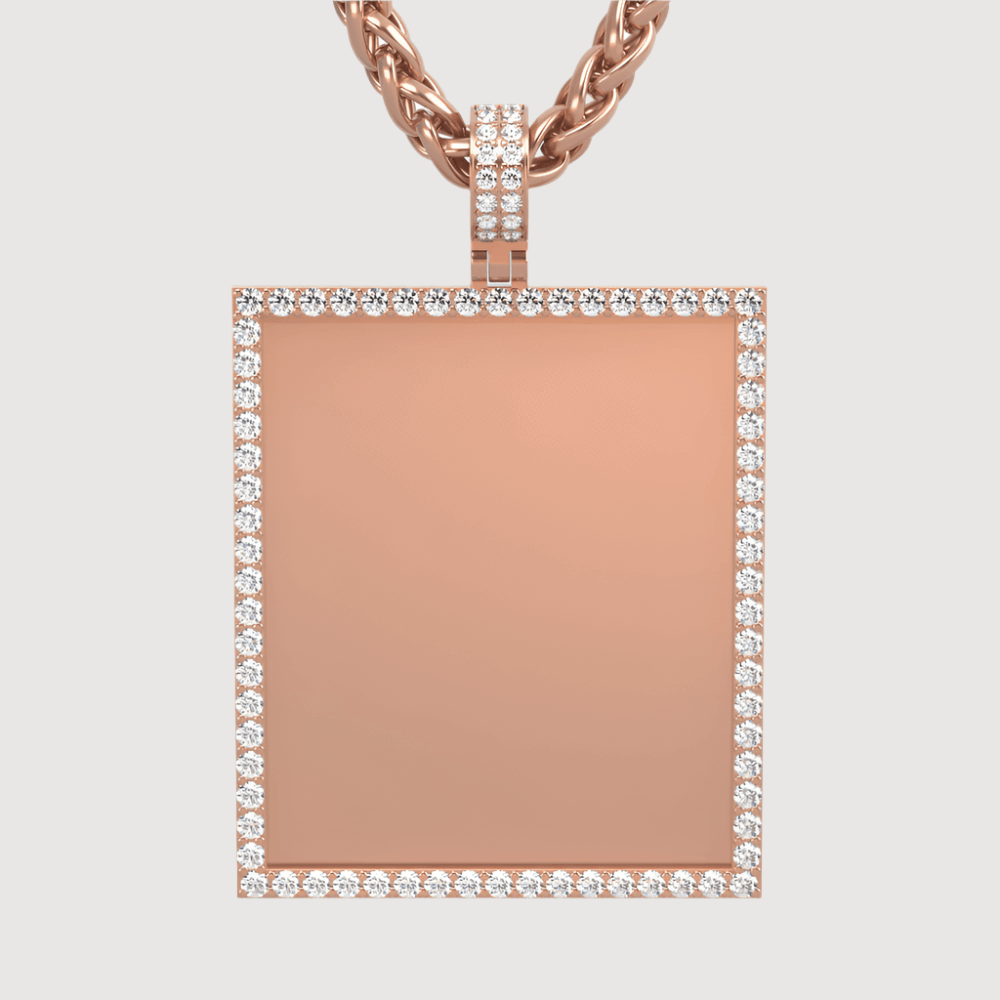 The 14K Gold Customizable Picture Pendant with Diamonds is a meaningful and luxurious way to preserve cherished memories. Crafted in radiant 14K gold, this pendant features a sleek, polished frame adorned with sparkling diamonds, adding elegance and brilliance to your personalized keepsake. The center is customizable, allowing you to showcase a treasured photo or design, making it uniquely yours.