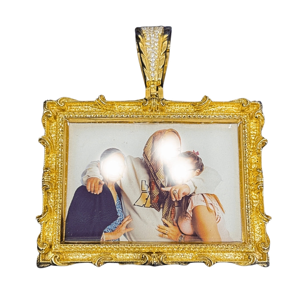 14K Gold Diamond Bail Big Frame Picture Pendant