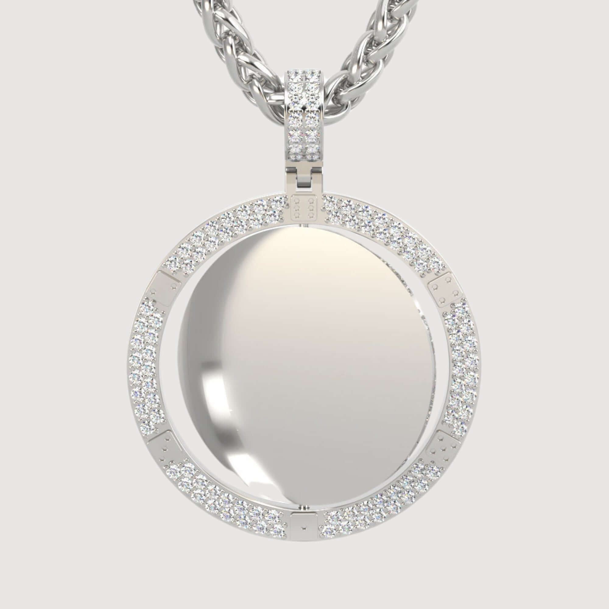 The 14K Gold Diamond-Accented Round Picture Pendant is a stunning fusion of elegance and craftsmanship. Featuring a brilliant circular frame accented with shimmering diamonds, this pendant perfectly balances luxury and personal sentiment. The polished 14K gold center provides the ideal backdrop for showcasing your most cherished photo, while the diamond details add sparkle and sophistication. A timeless accessory, this pendant transforms your memories into a beautiful statement piece.