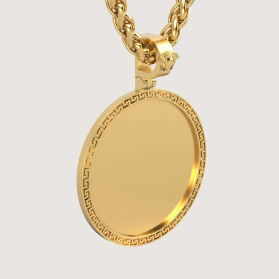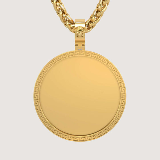 14K Gold Greek Key Round Picture Pendant